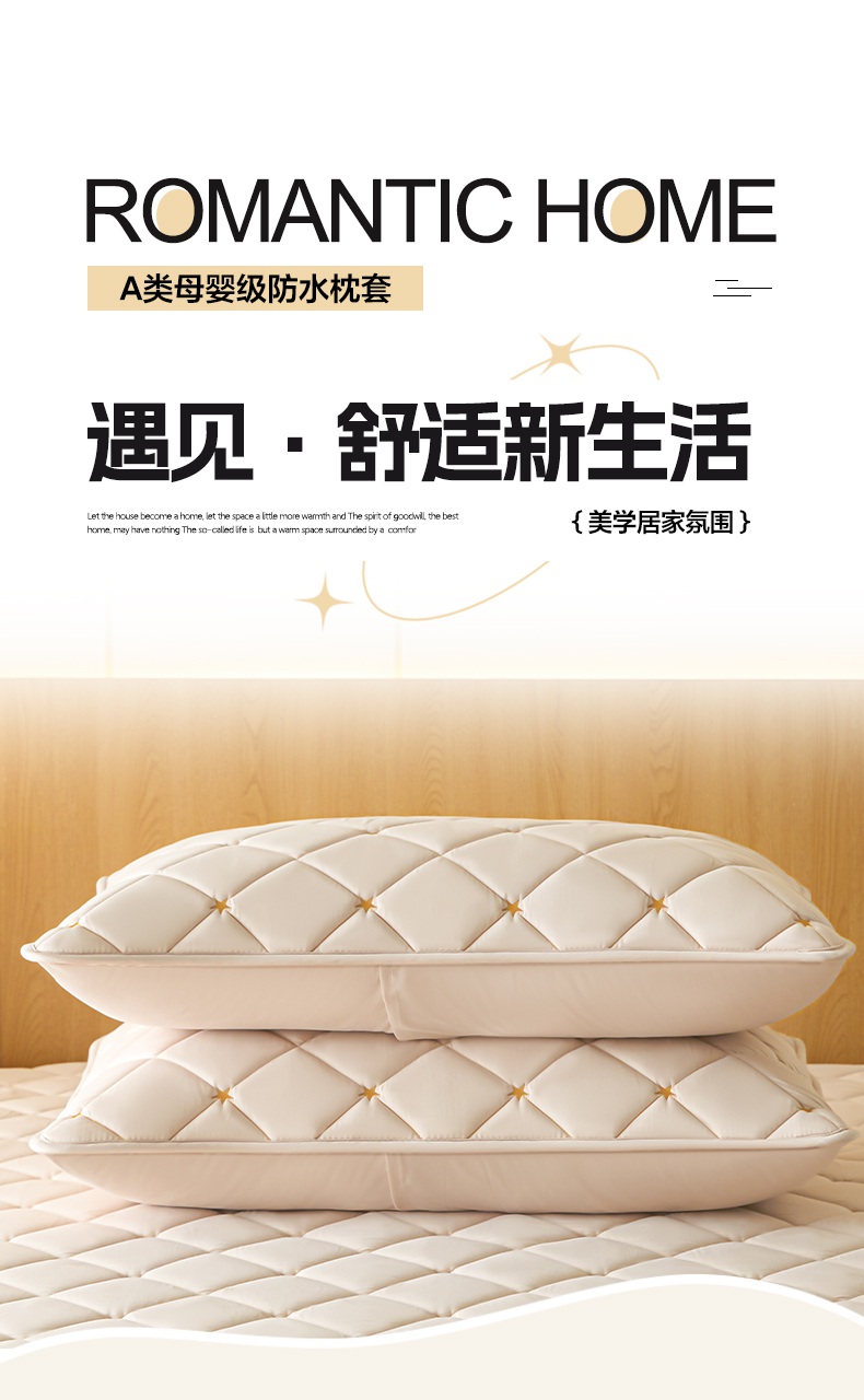 芬晴家纺 2025新款防水枕套-繁星-爱心-简爱-空间 空间-卡其