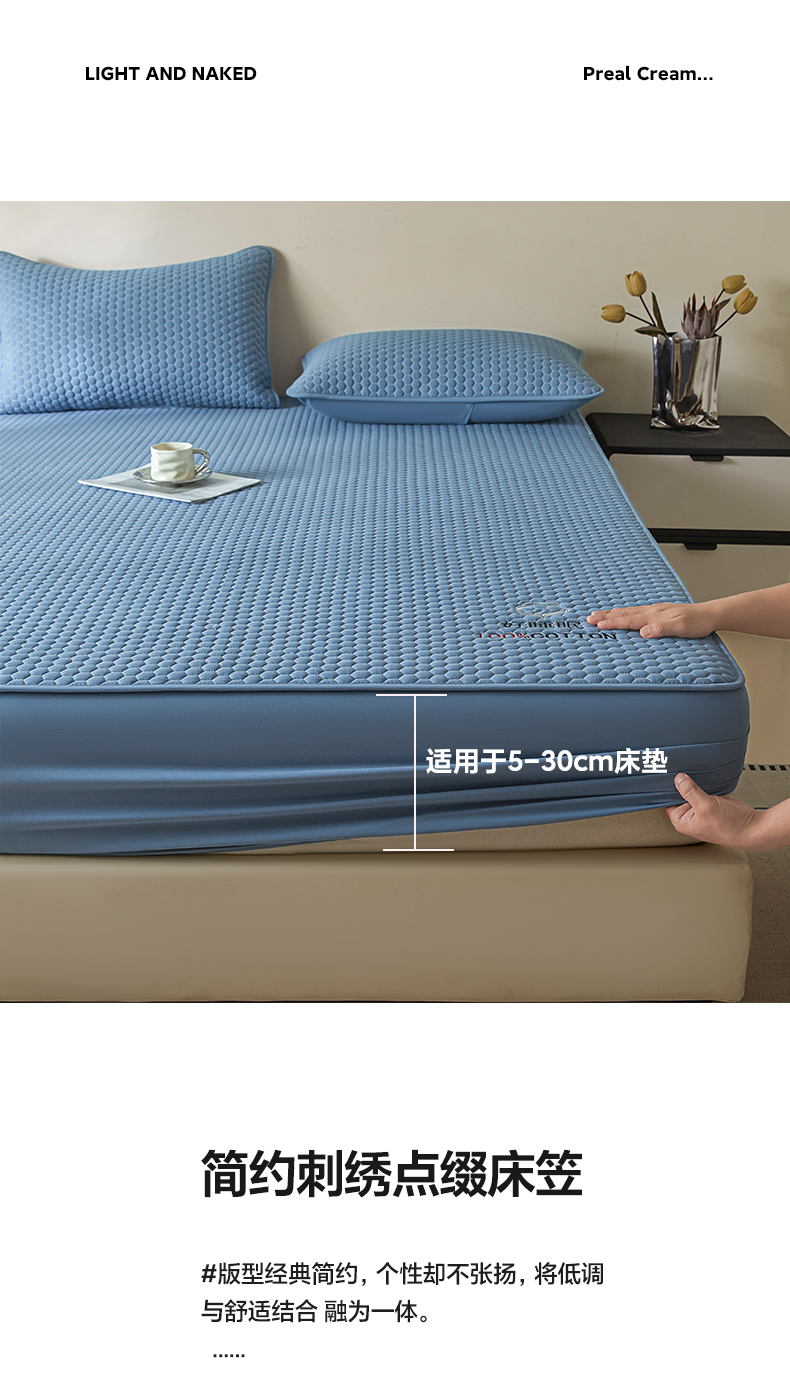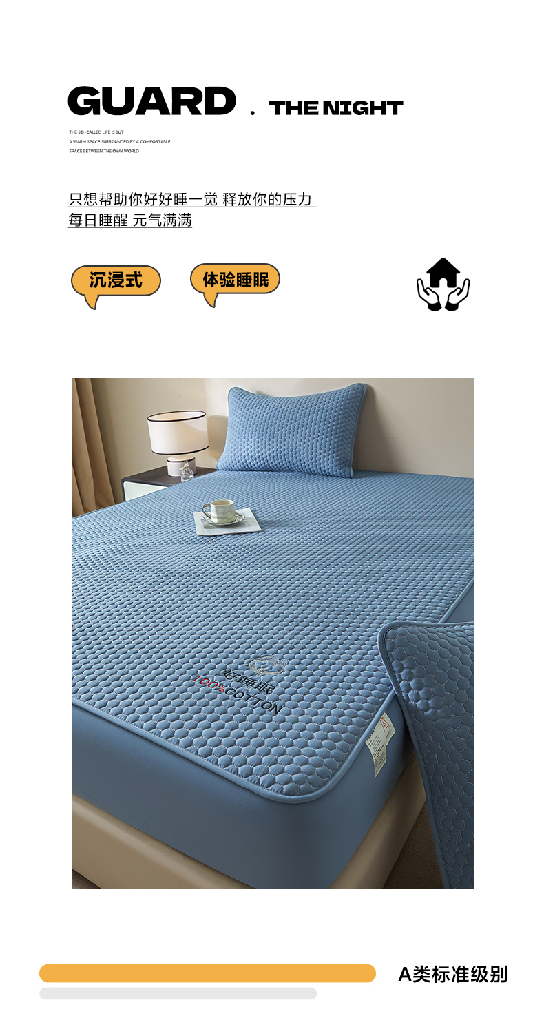 芬晴家纺 2025新款A类好睡眠全棉夹棉系列床笠 好睡眠-雾蓝