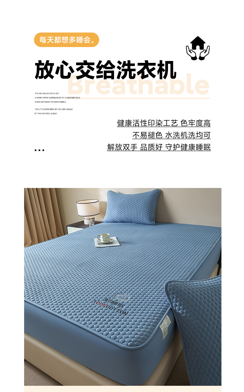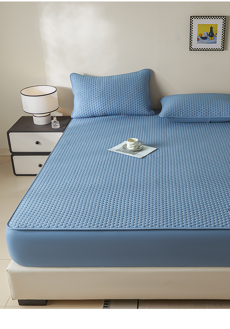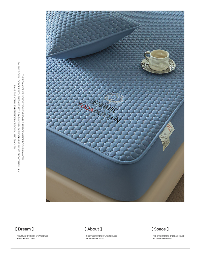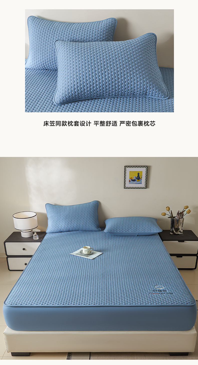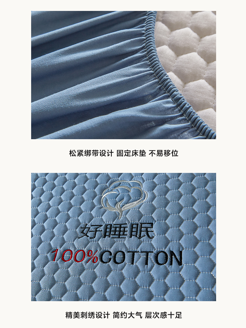 • 91家纺网 家纺一手货源 找家纺 芬晴家纺 2025新款A类好睡眠全棉夹棉系列床笠 好睡眠-雾蓝