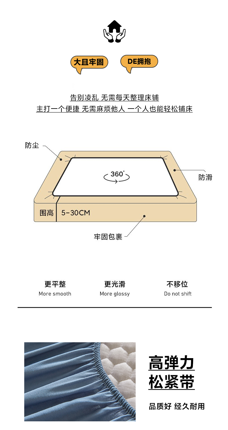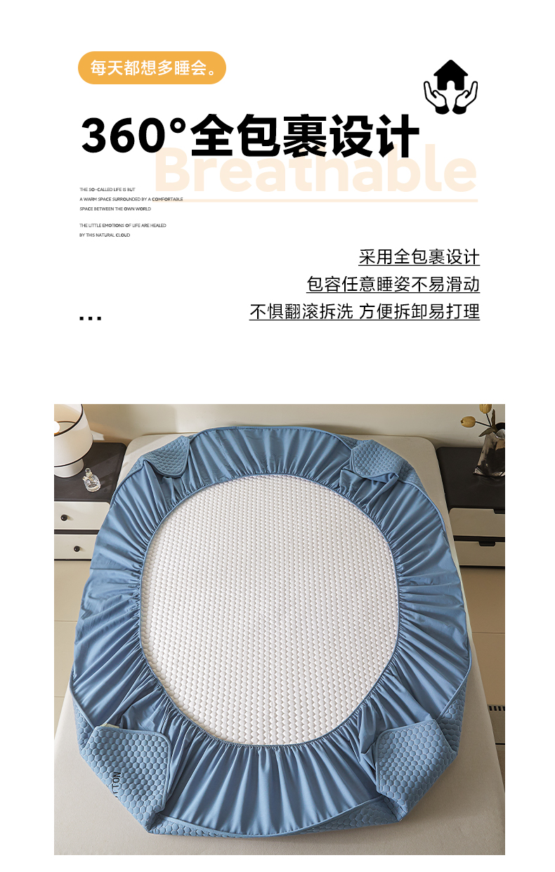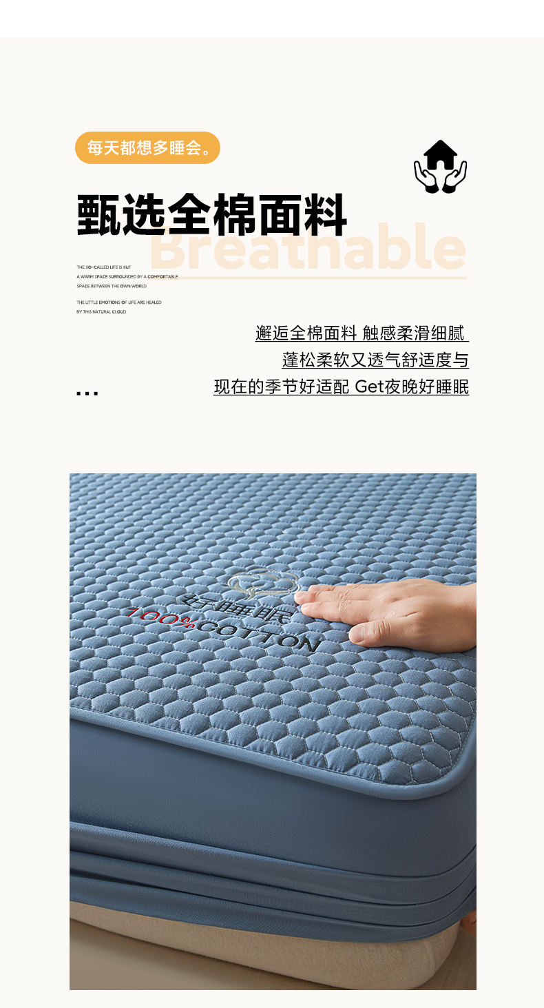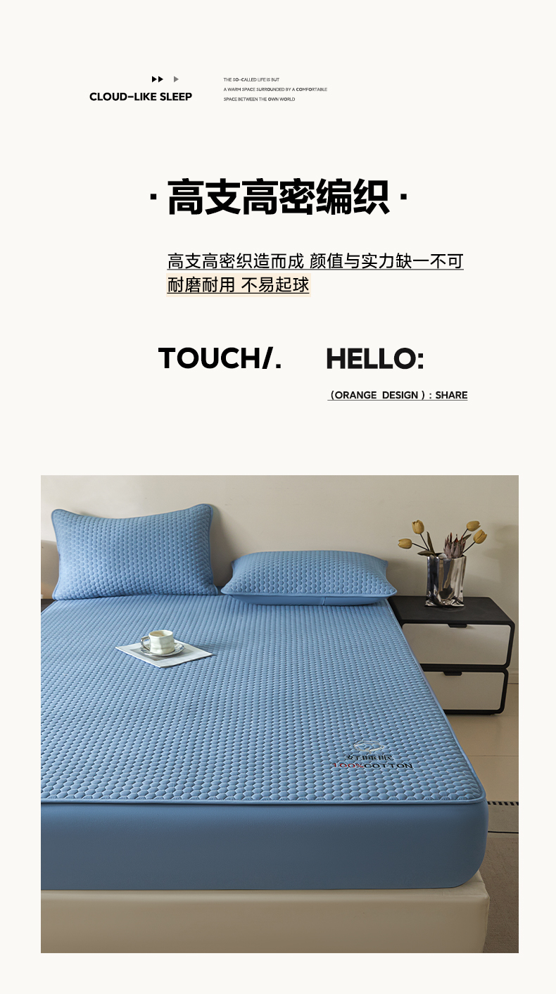 • 91家纺网 家纺一手货源 找家纺 芬晴家纺 2025新款A类好睡眠全棉夹棉系列床笠 好睡眠-雾蓝