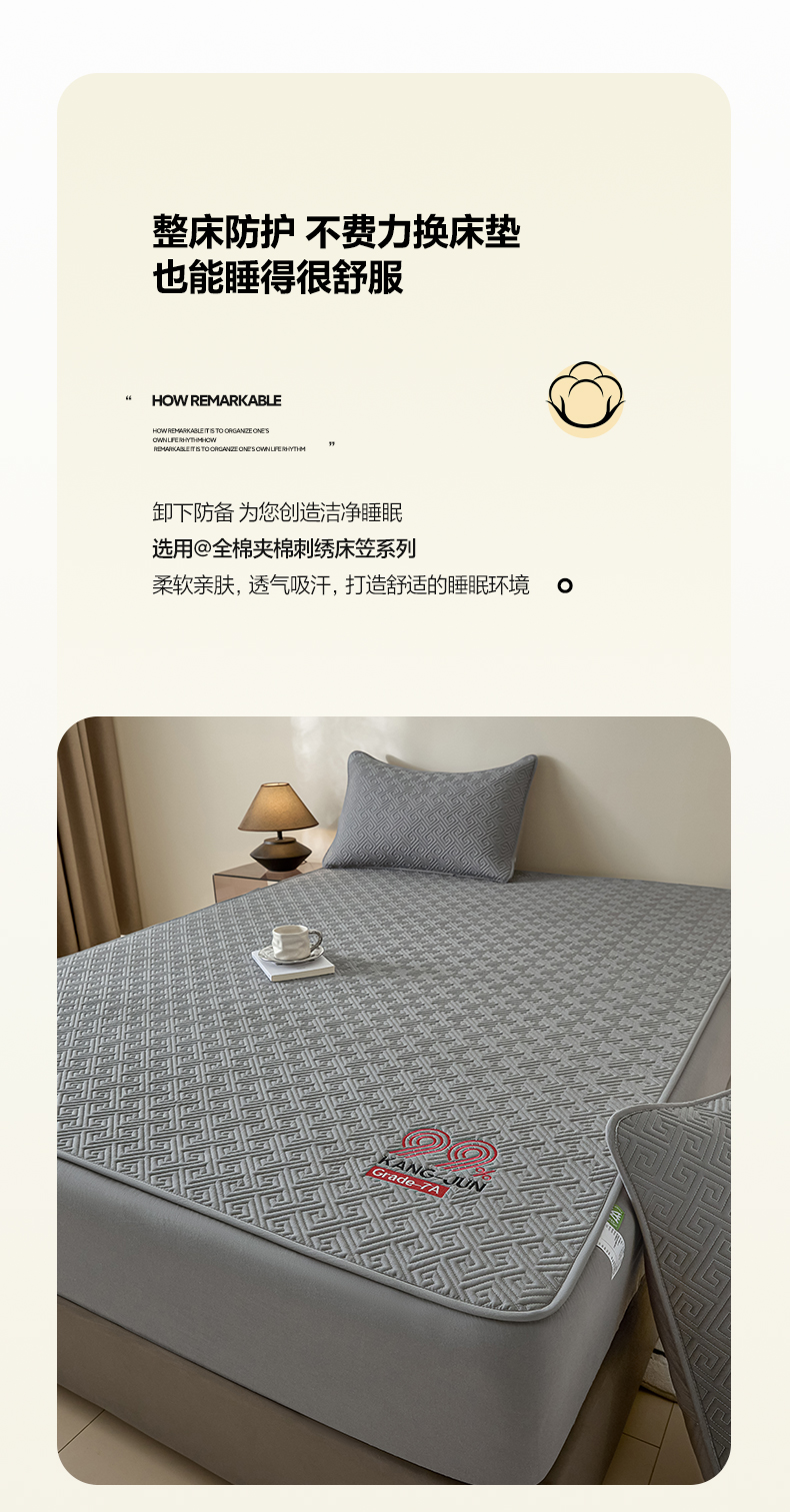 • 91家纺网 家纺一手货源 找家纺 芬晴家纺 2025新款久久全棉棉花床笠 99-岩灰