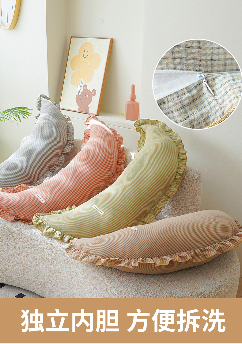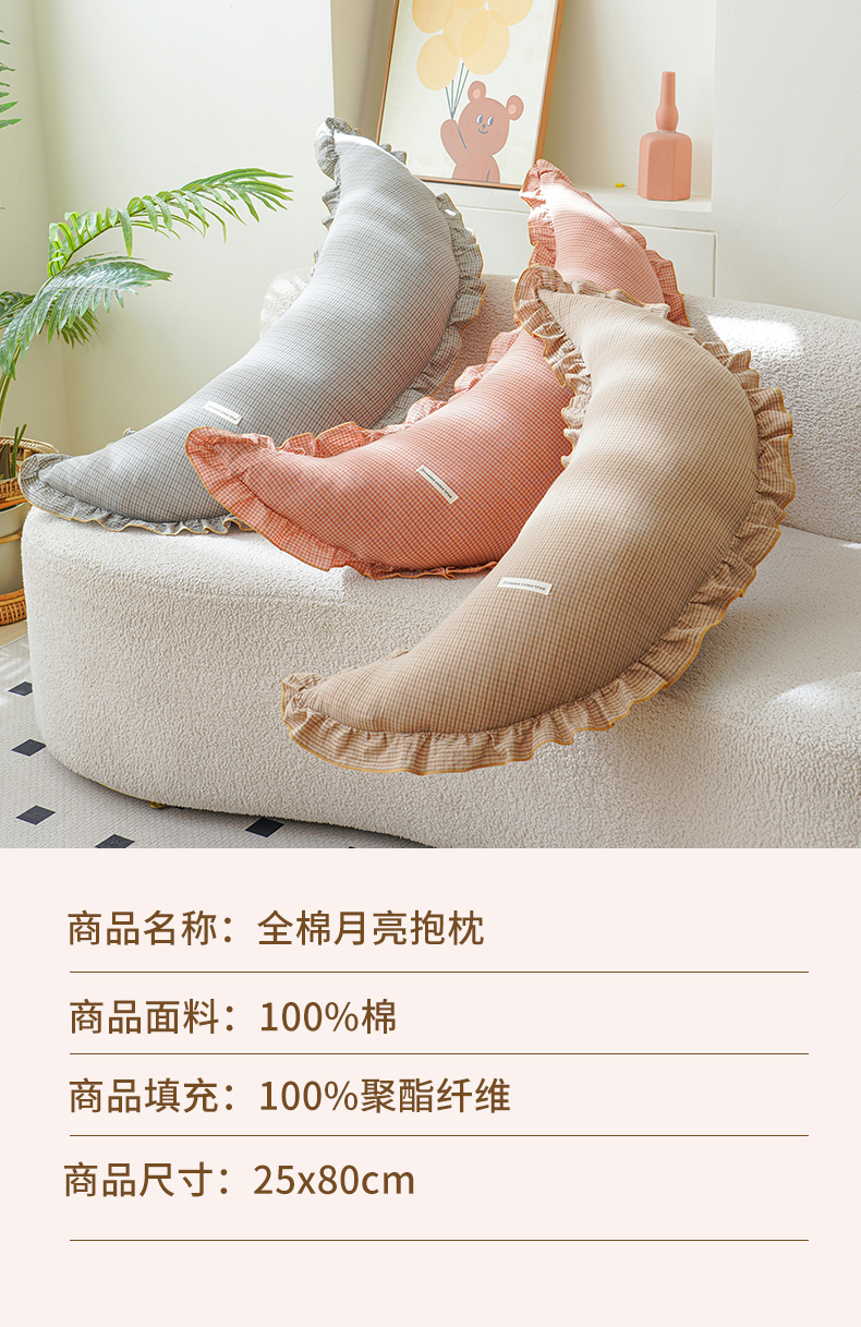 (总)蔻眠 花边款多功能全棉月亮长抱枕夹腿抱枕芯月亮枕头,主图,花边款月亮-驼格,花边款月亮-橙格,花边款月亮-灰格,花边款月亮-绿格