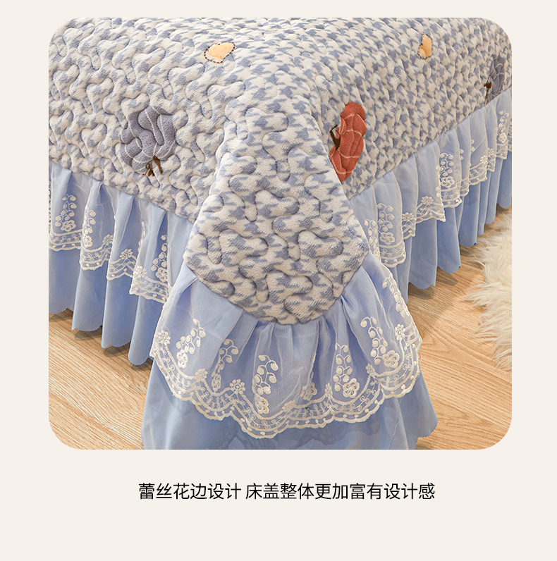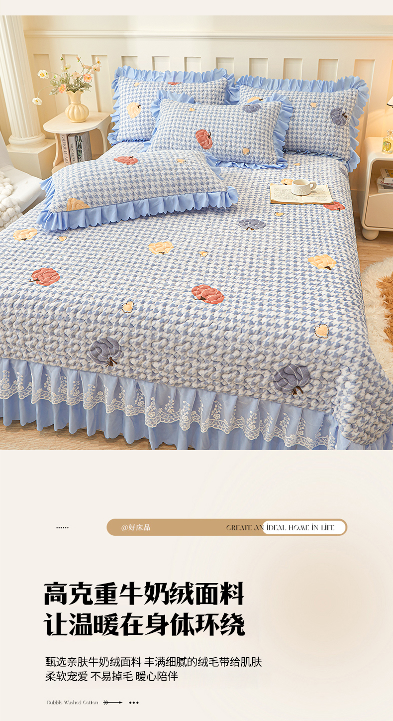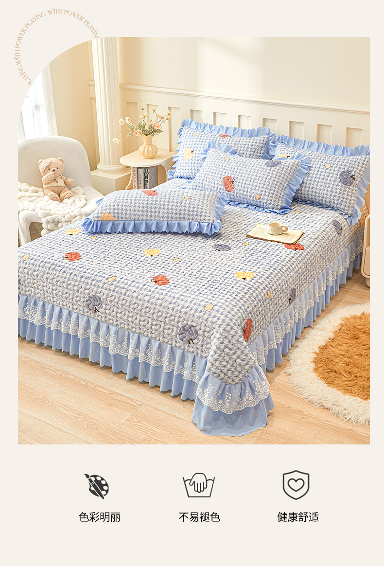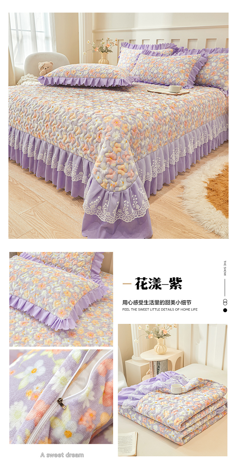 当前位置: 91家纺网 > 商品网购 > 床品套件 > 三件套 > 艾裙海 2025新款蕾丝边牛奶绒床盖三件套 南瓜派-兰