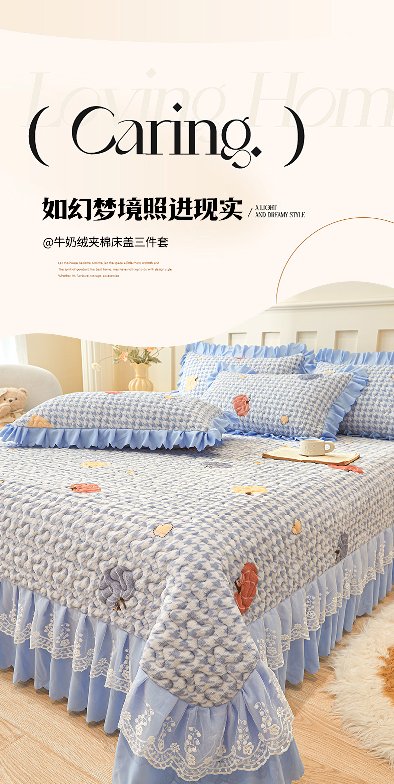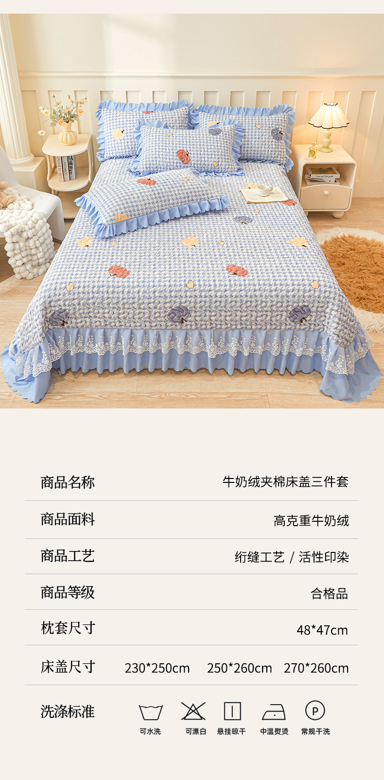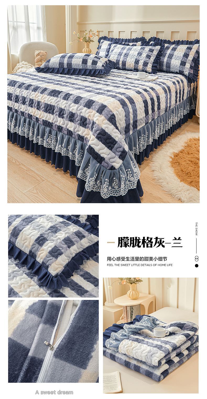 当前位置: 91家纺网 > 商品网购 > 床品套件 > 三件套 > 艾裙海 2025新款蕾丝边牛奶绒床盖三件套 南瓜派-兰