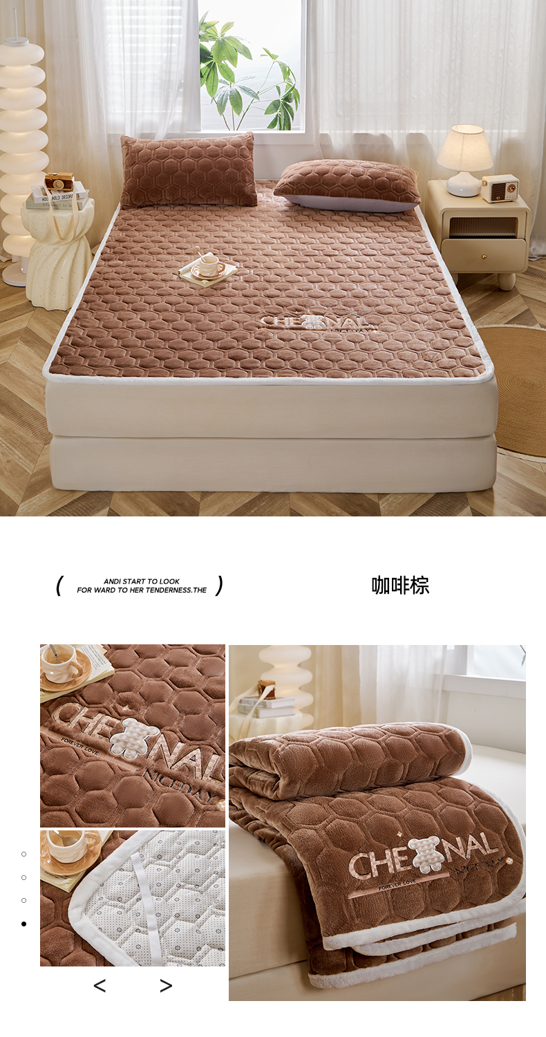 (总)永旺家纺 2025新款保暖牛奶牛奶绒床垫床褥,豹纹,蝶影,可爱熊猫