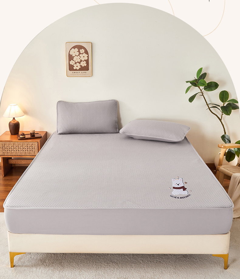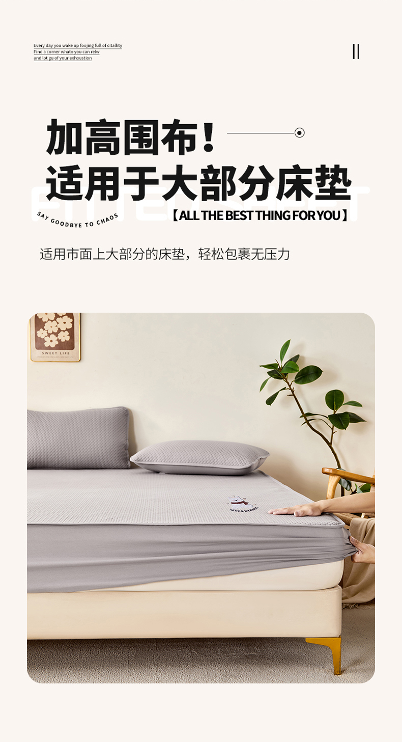 (总)永旺家纺 2025新款纯色防水床笠-柯基系列,灰柯基,黄柯基,绿柯基,蓝柯基,粉柯基
