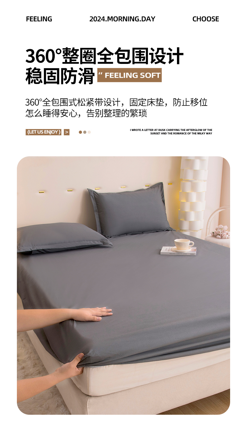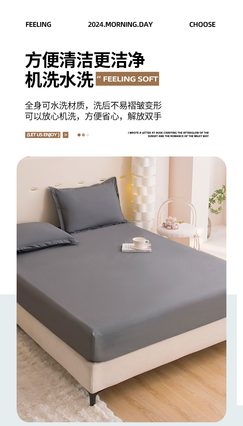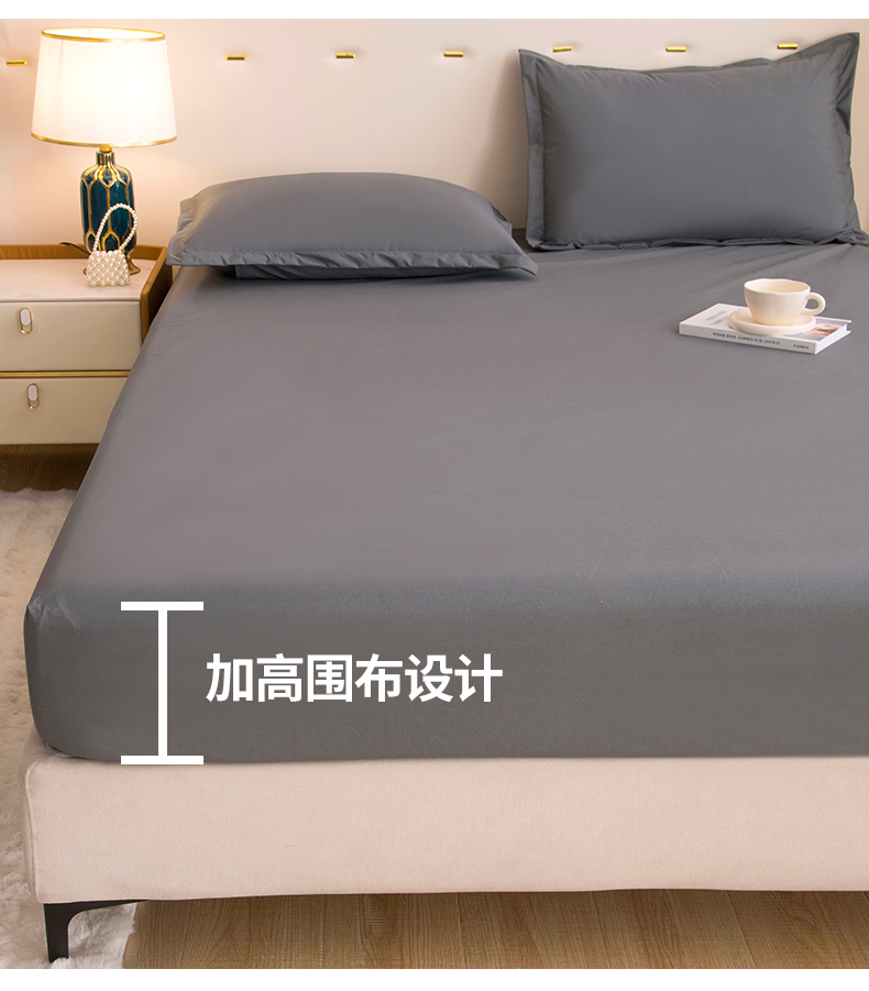 • 91家纺网 家纺一手货源 找家纺 茗婷家纺 2026新款供跨境外贸纯色印花防水床笠 深灰