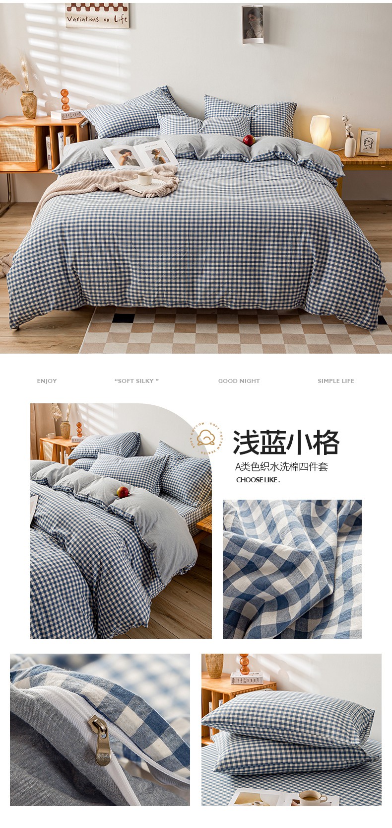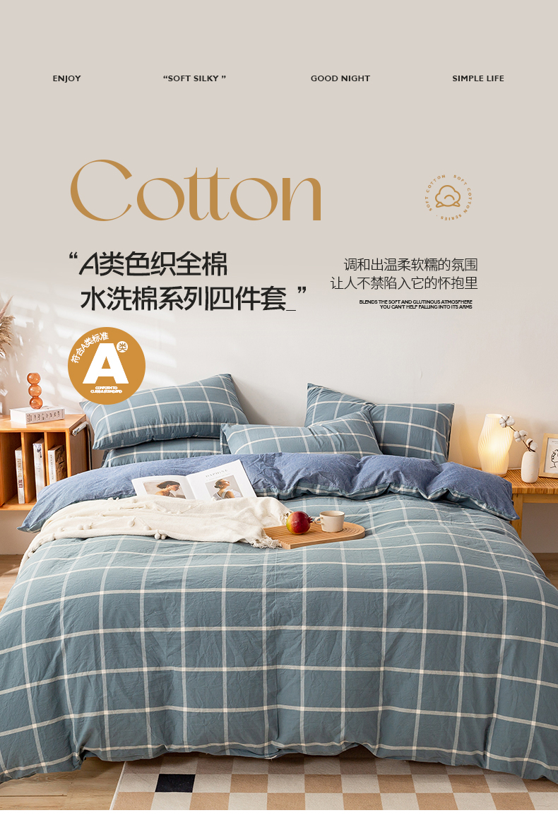 当前位置: 91家纺网 > 商品网购 > 床品套件 > 四件套 > 水洗棉四件套 > 咏绒家纺工厂店 2025新款A类色织水洗棉四件套 莫妮卡灰