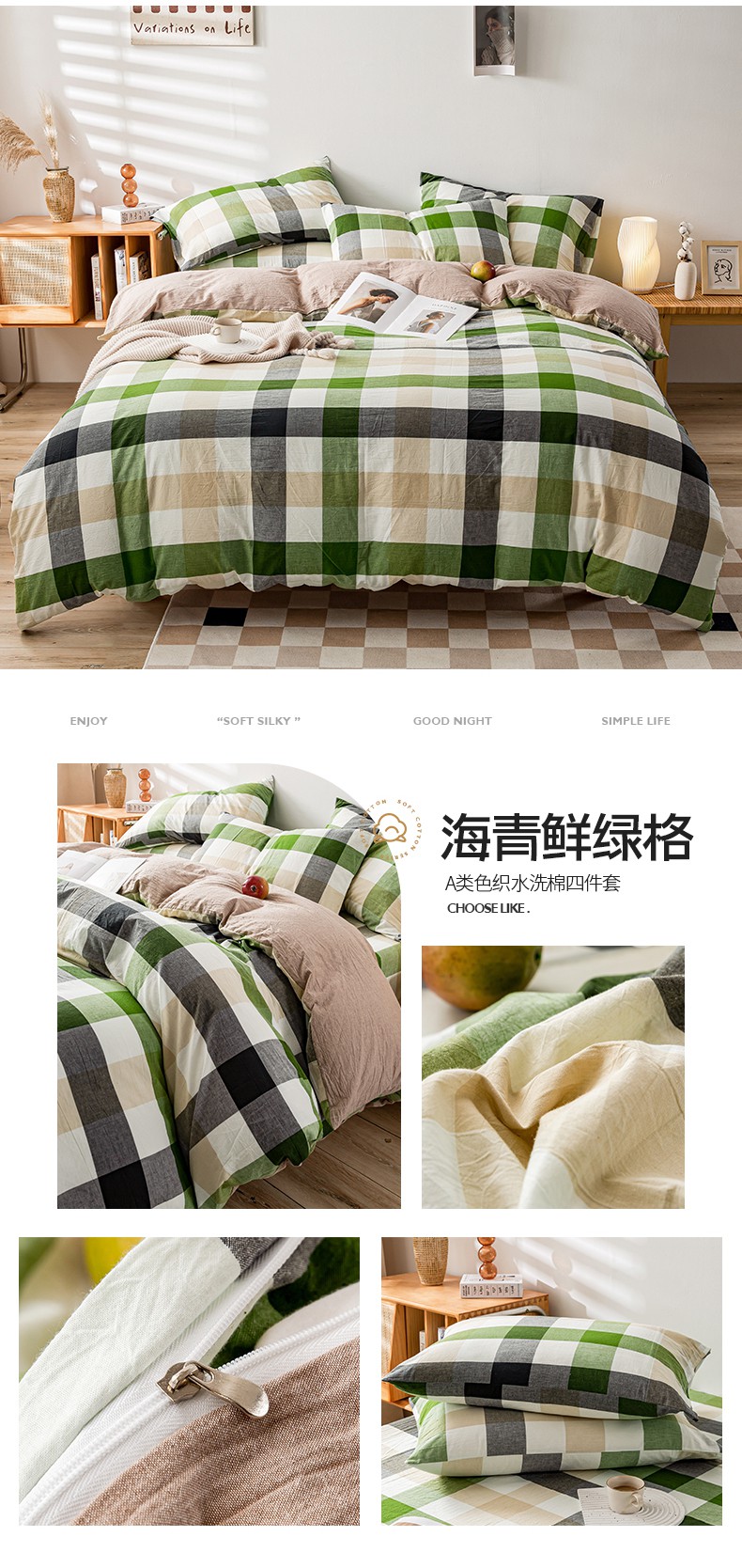 当前位置: 91家纺网 > 商品网购 > 床品套件 > 四件套 > 水洗棉四件套 > 咏绒家纺工厂店 2025新款A类色织水洗棉四件套 星空绿