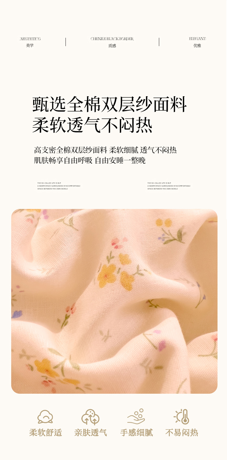 当前位置: 91家纺网 > 商品网购 > 床品套件 > 四件套 > 全棉普通四件套 > DoDo 兜兜 2026新款全棉纯棉柔软双层纱套件系列(可定做尺寸) 伊卡