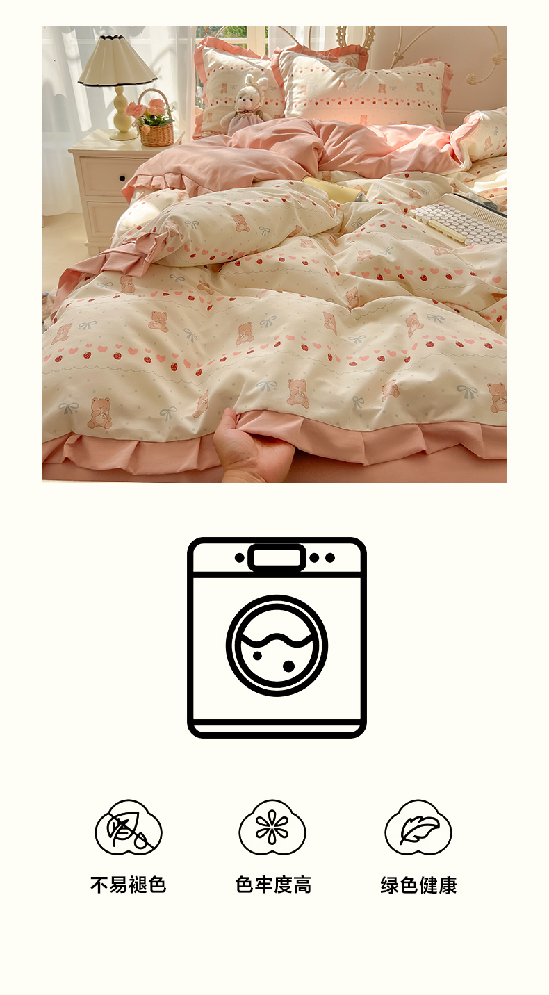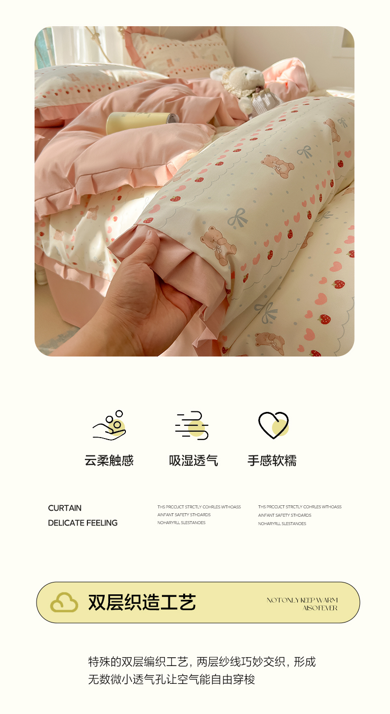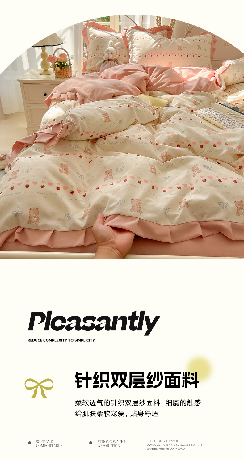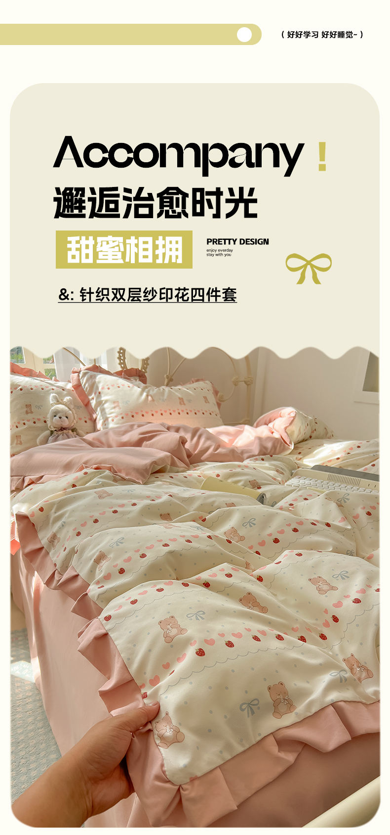 当前位置: 91家纺网 > 商品网购 > 床品套件 > 四件套 > 双层纱四件套 > 韩巢家纺 2026新款花边款针织双层纱四件套 可爱熊