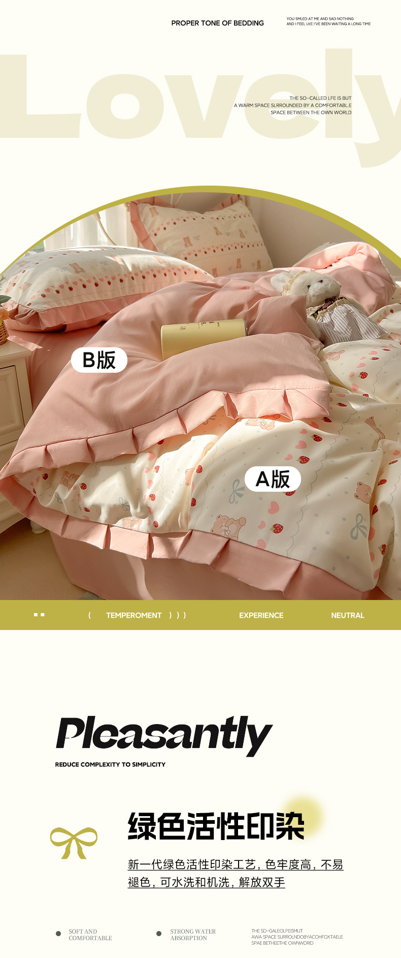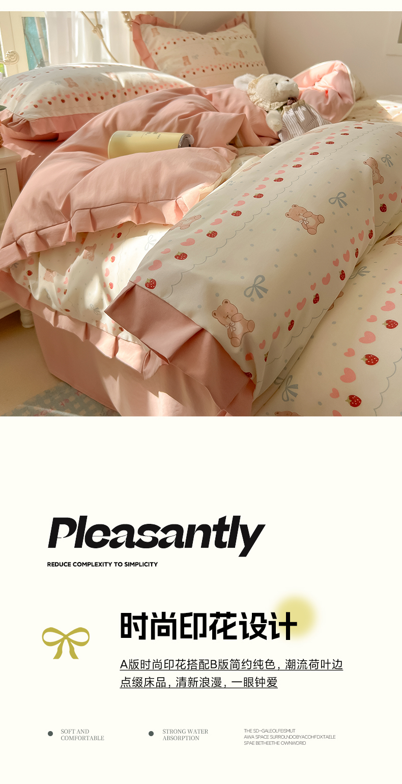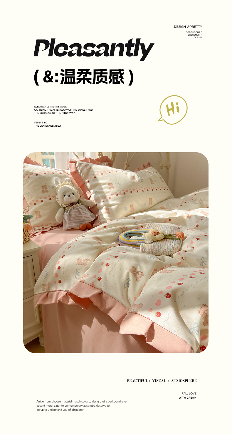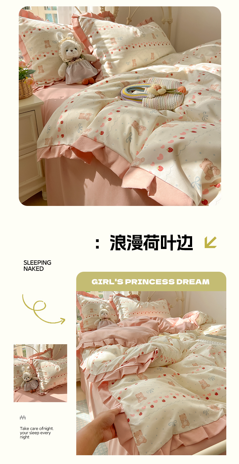 当前位置: 91家纺网 > 商品网购 > 床品套件 > 四件套 > 双层纱四件套 > 韩巢家纺 2026新款花边款针织双层纱四件套 可爱熊