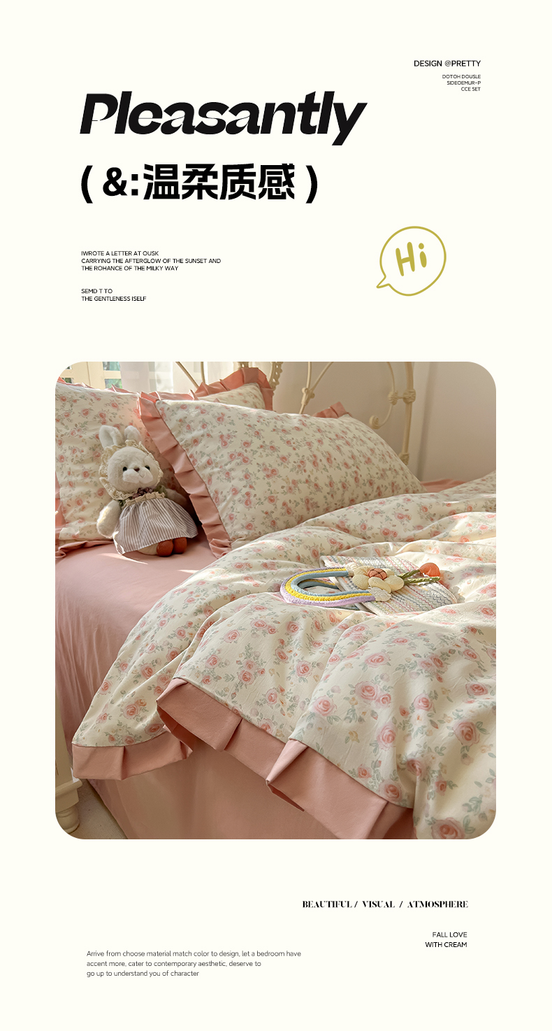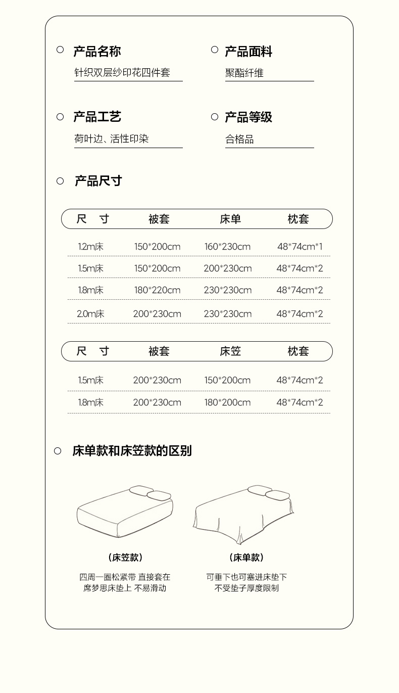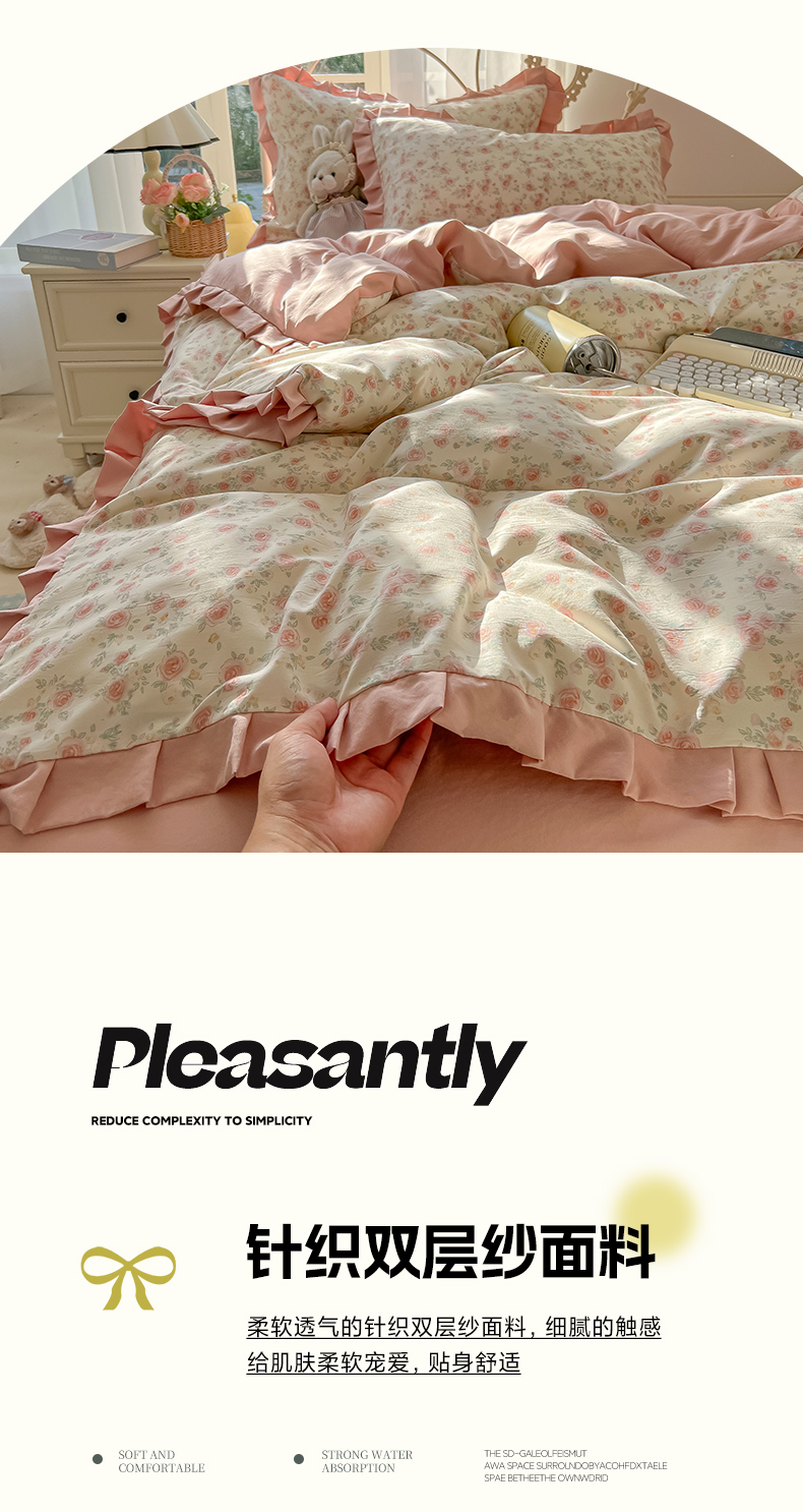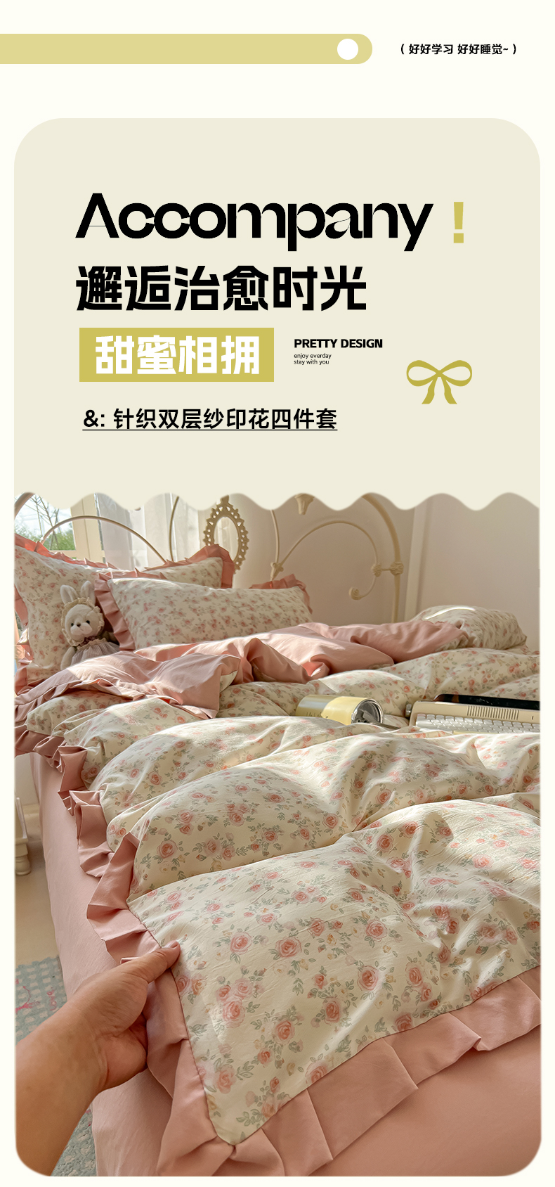 当前位置: 91家纺网 > 商品网购 > 床品套件 > 四件套 > 双层纱四件套 > 韩巢家纺 2026新款花边款针织双层纱四件套 塞林娜米黄