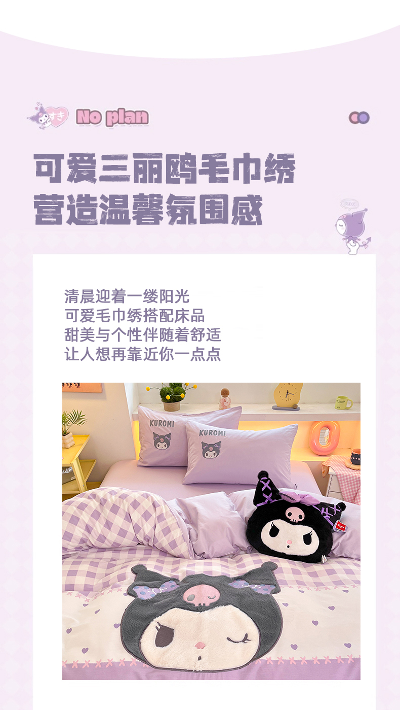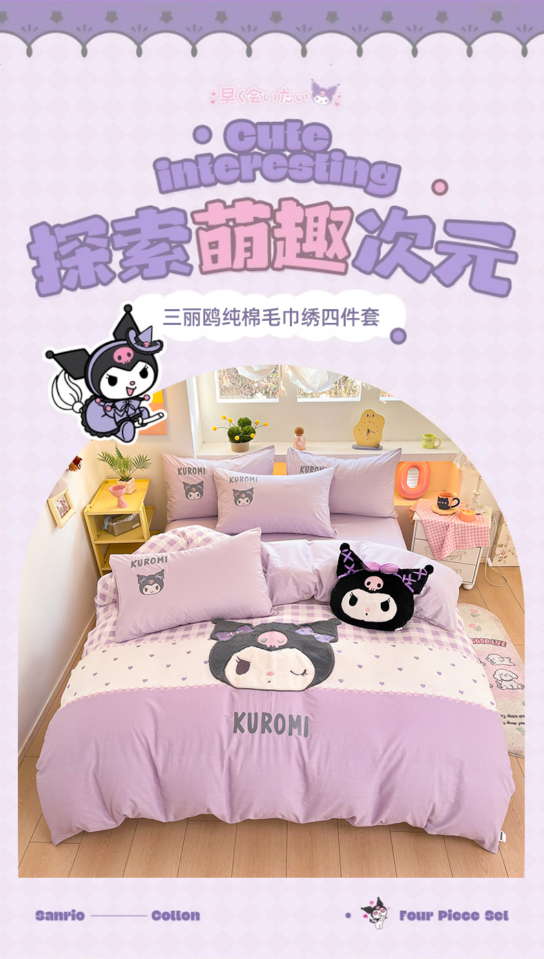 当前位置: 91家纺网 > 商品网购 > 床品套件 > 四件套 > 全棉普通四件套 > 金爱家 2026新款纯棉三丽鸥毛巾绣四件套 棉毛巾绣-呆萌库洛米