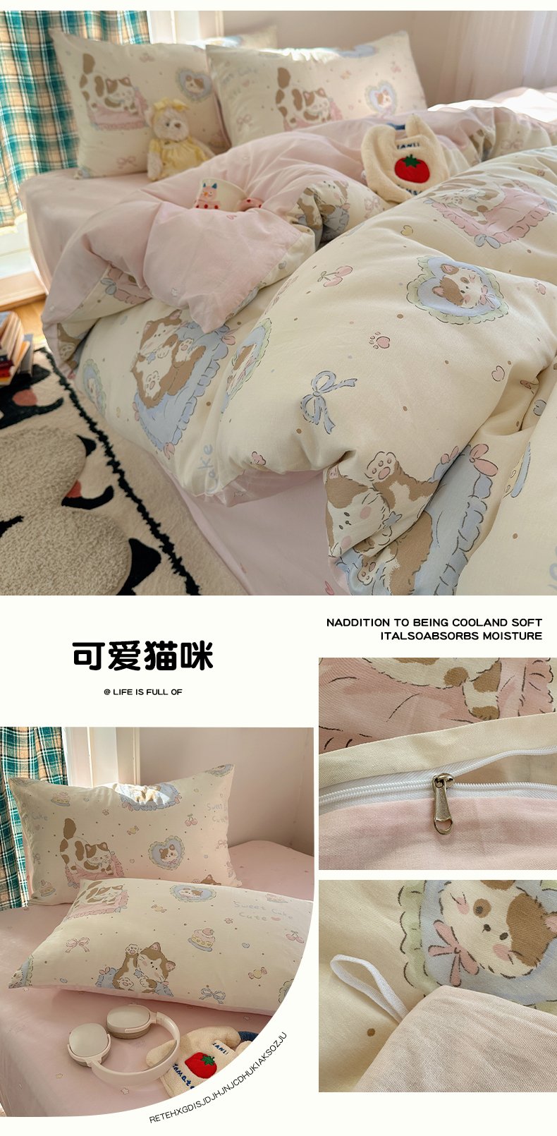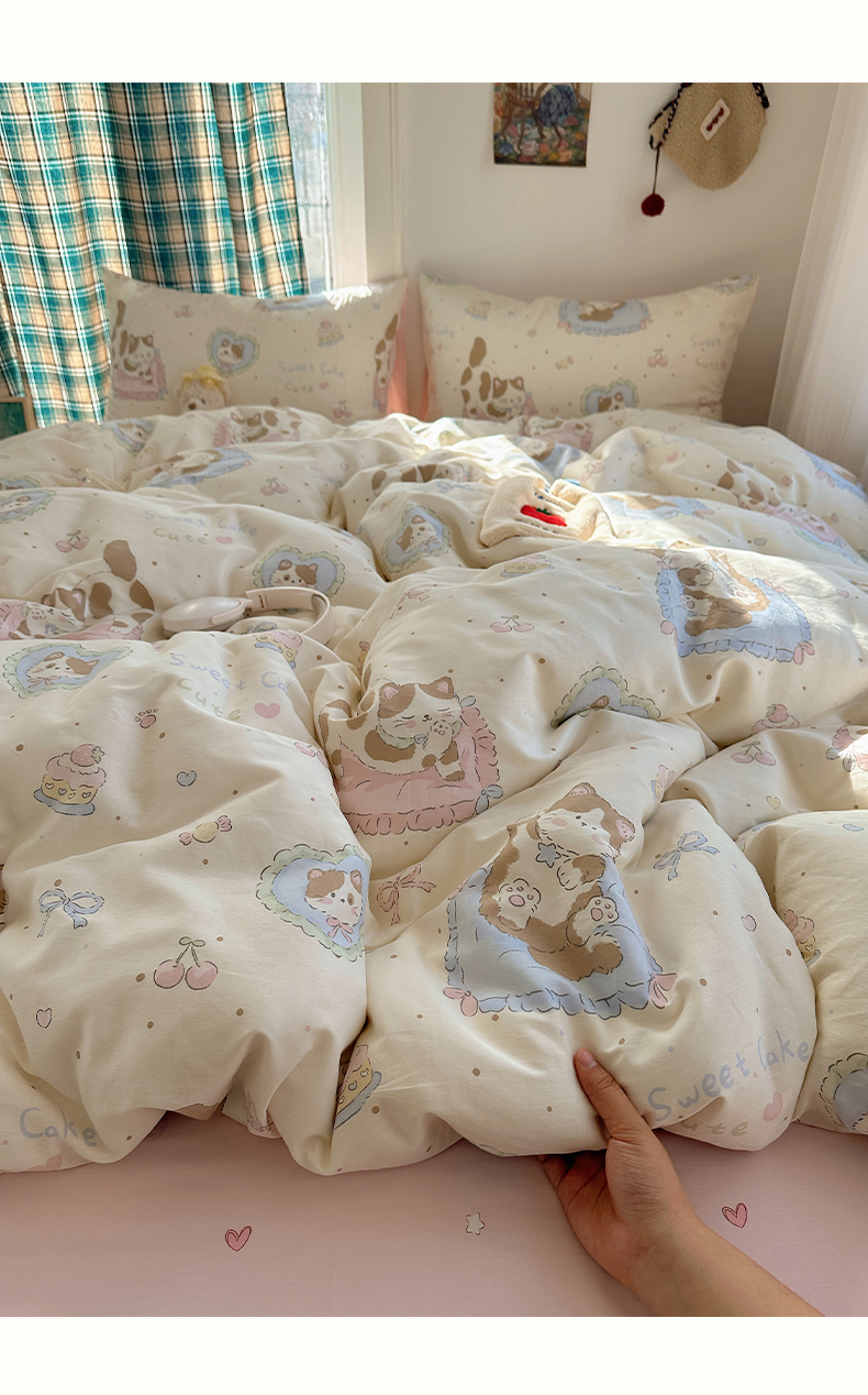 当前位置: 91家纺网 > 商品网购 > 床品套件 > 四件套 > 全棉普通四件套 > 瑞莱 2026春季新款全棉纯棉印花小清新萌趣系列四件套 可爱猫咪
