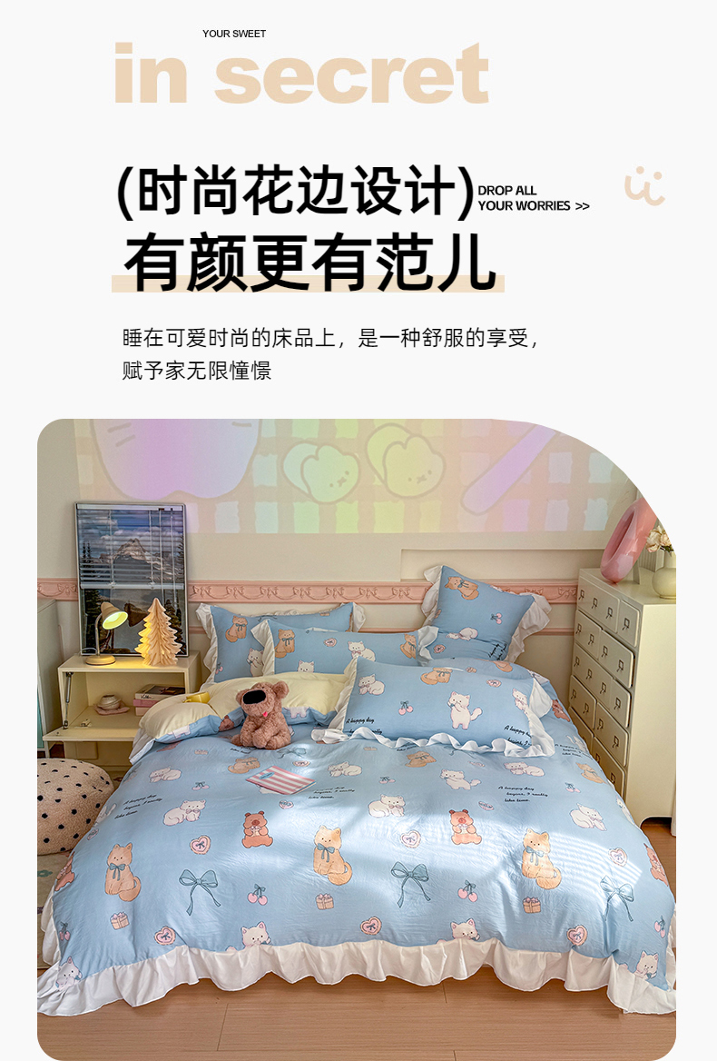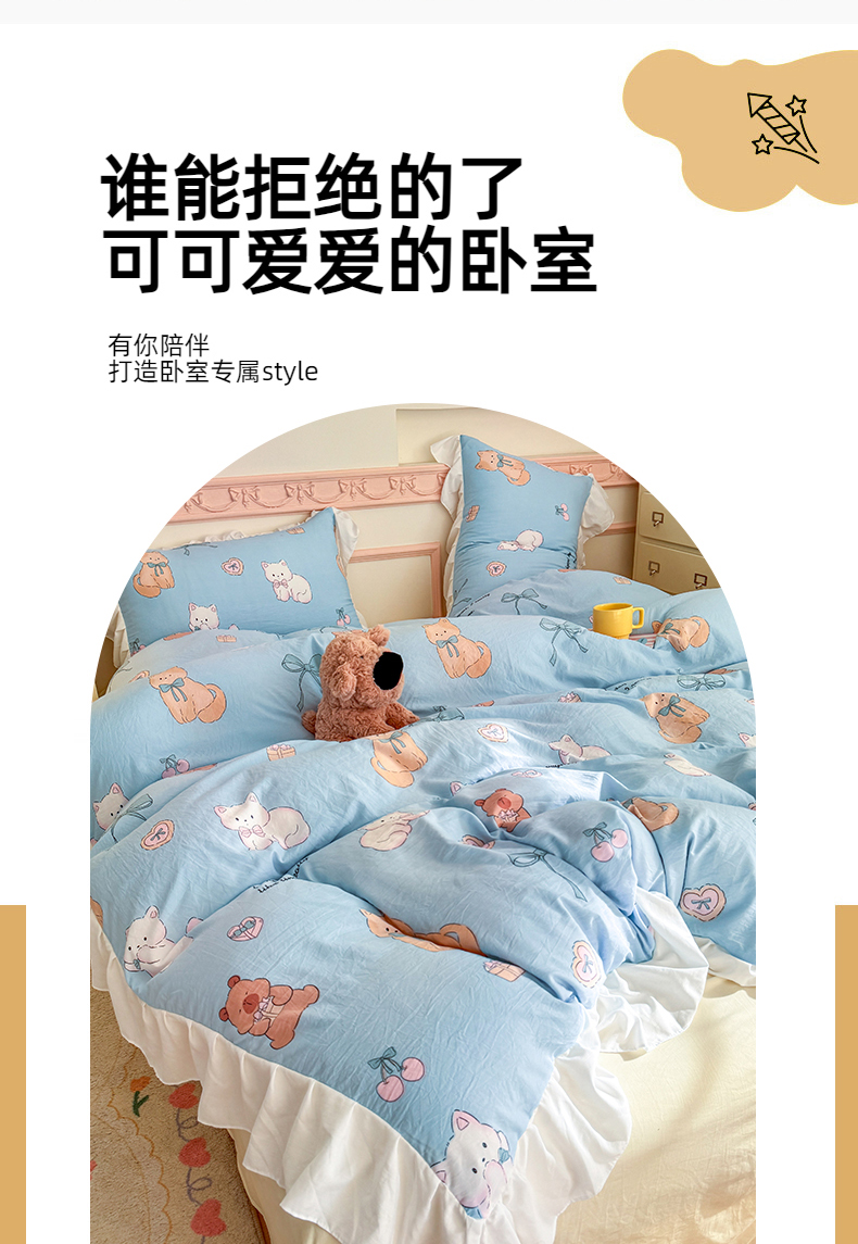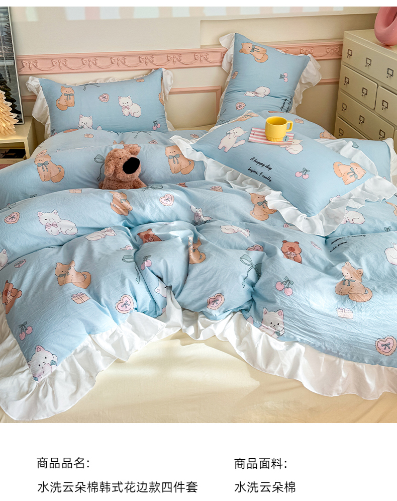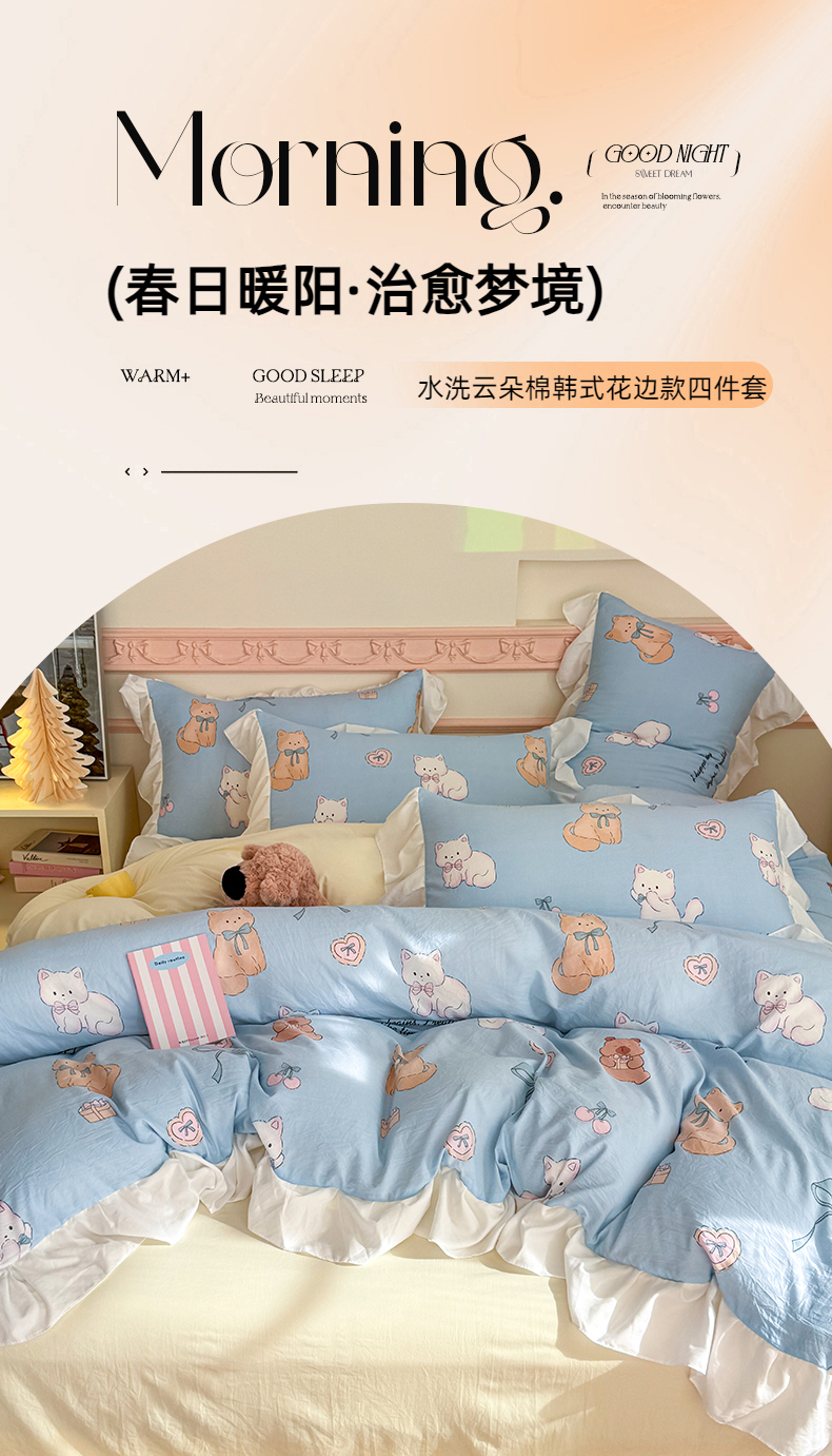 当前位置: 91家纺网 > 商品网购 > 床品套件 > 四件套 > 水洗棉四件套 > 温眠家纺 2025新款水洗云朵棉韩式INS减龄花边款四件套 海派甜心