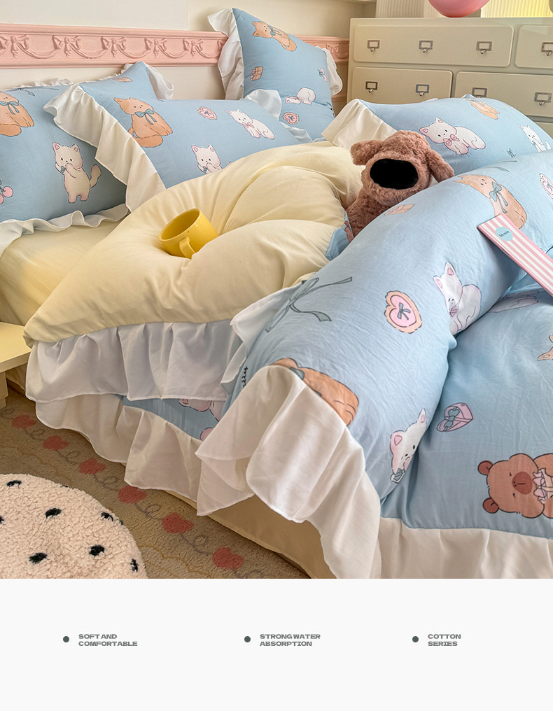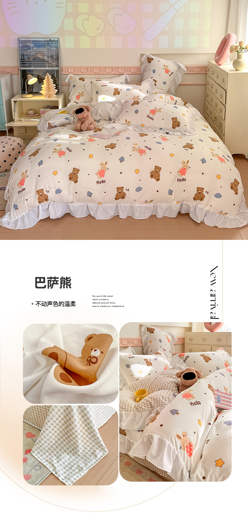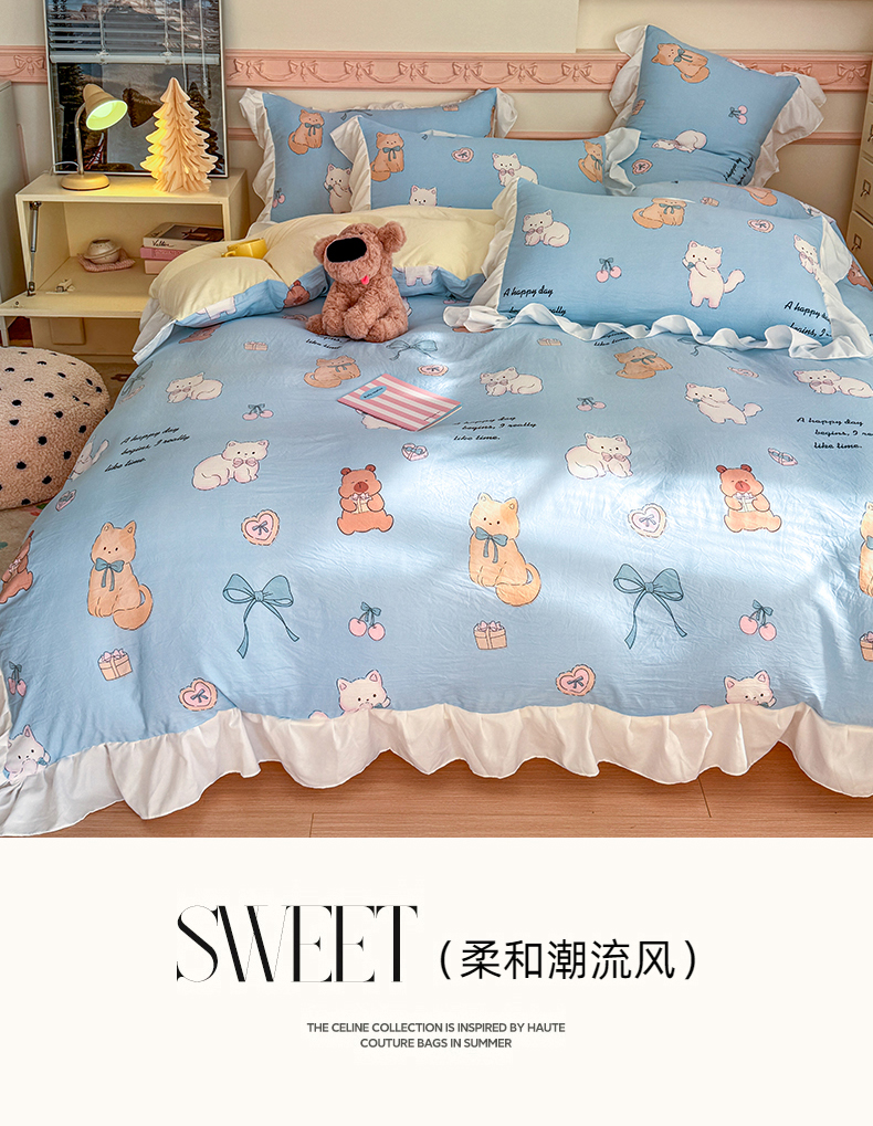 当前位置: 91家纺网 > 商品网购 > 床品套件 > 四件套 > 水洗棉四件套 > 温眠家纺 2025新款水洗云朵棉韩式INS减龄花边款四件套 海派甜心