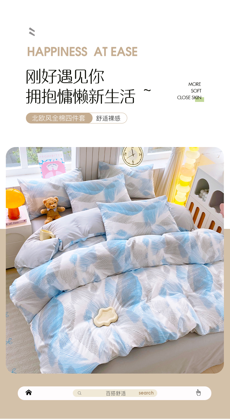 当前位置: 91家纺网 > 商品网购 > 床品套件 > 四件套 > 全棉普通四件套 > 小懒猪 2026新款北欧风高支高密全棉纯棉四件套(提供买家秀) 蓝絮银织
