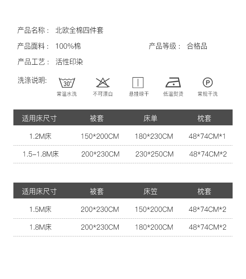 【床笠款】1.5四件套-被套200x230 | ¥105.00 |