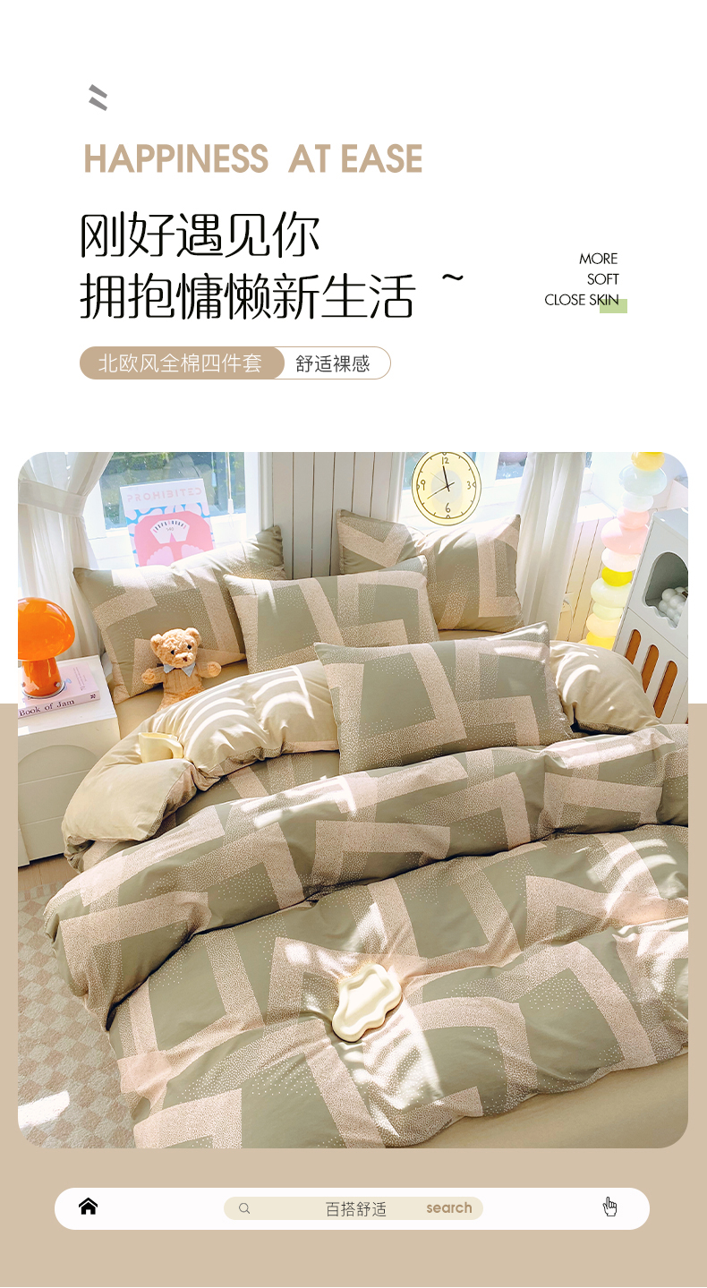 当前位置: 91家纺网 > 商品网购 > 床品套件 > 四件套 > 全棉普通四件套 > 小懒猪 2026新款北欧风高支高密全棉纯棉四件套(提供买家秀) 素律