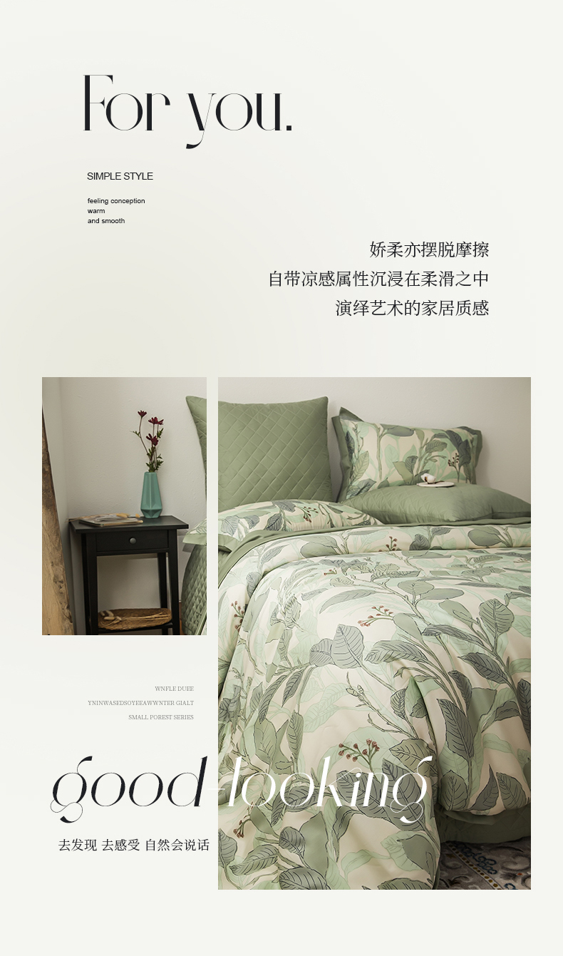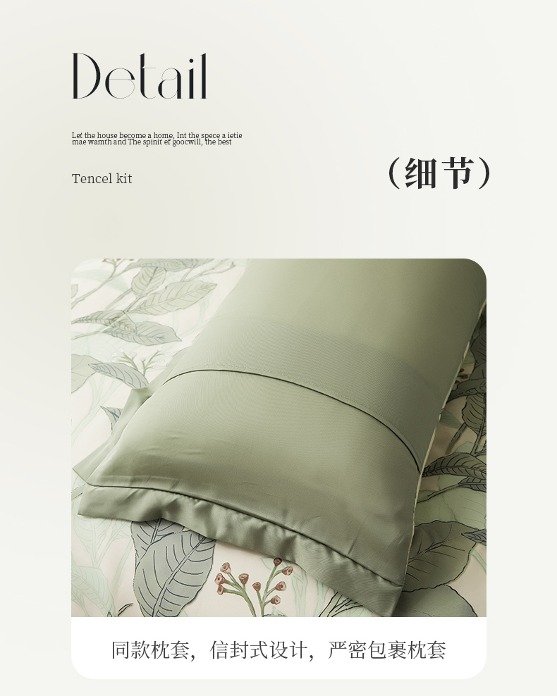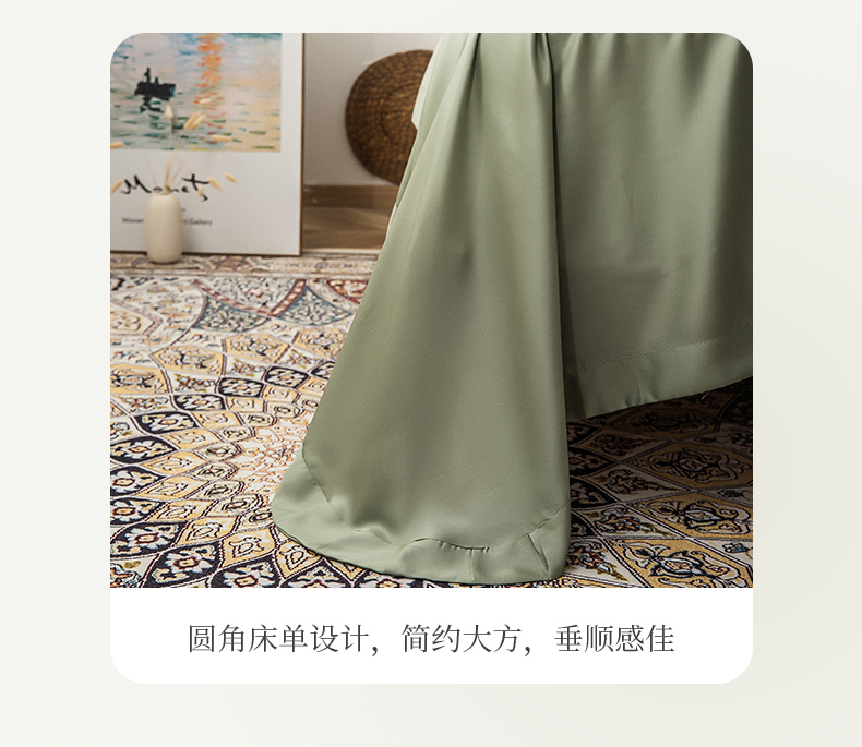 • 91家纺网 家纺一手货源 找家纺 恩和家纺 2026新款50s莱赛尔天丝套件美式对角款床盖多件套 箬叶