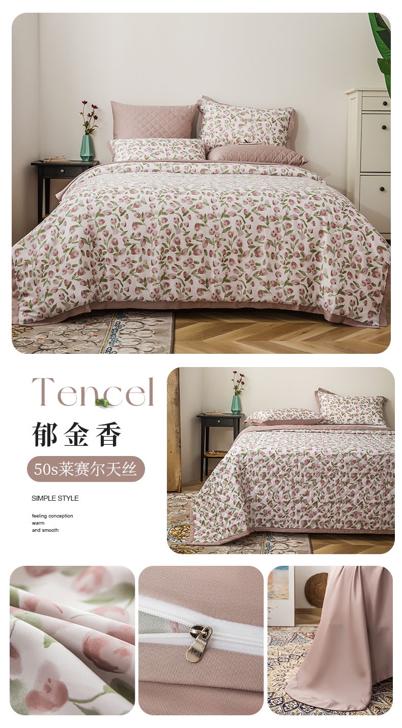 • 91家纺网 家纺一手货源 找家纺 (总)恩和家纺 2026新款50s莱赛尔天丝床盖被美式对角款四件套,美拉,箬叶,郁金香
