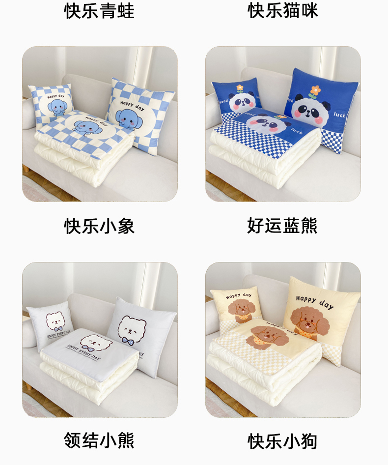 (总)新奇异 2025新款数码印花多功能抱枕被,快乐青蛙,快乐小狗,领结小熊,快乐小象,快乐猫咪,好运蓝熊