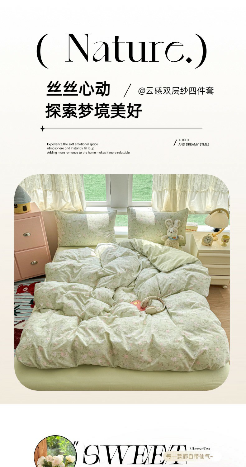 当前位置: 91家纺网 > 商品网购 > 床品套件 > 四件套 > 双层纱四件套 > 温眠家纺 2025新款云感针织双层纱四件套 木槿绿