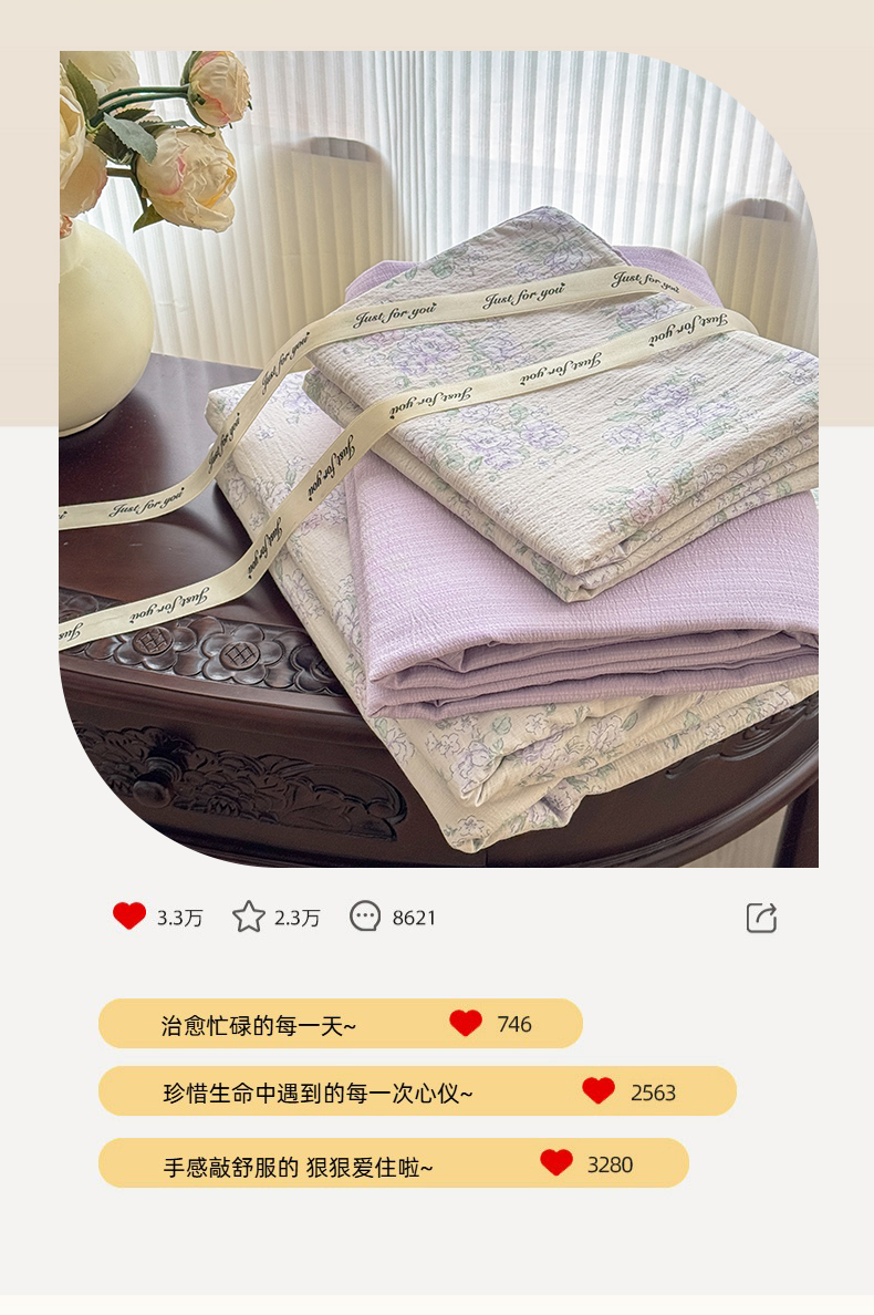 当前位置: 91家纺网 > 商品网购 > 床品套件 > 四件套 > 双层纱四件套 > 温眠家纺 2025新款云感针织双层纱四件套 花开半夏