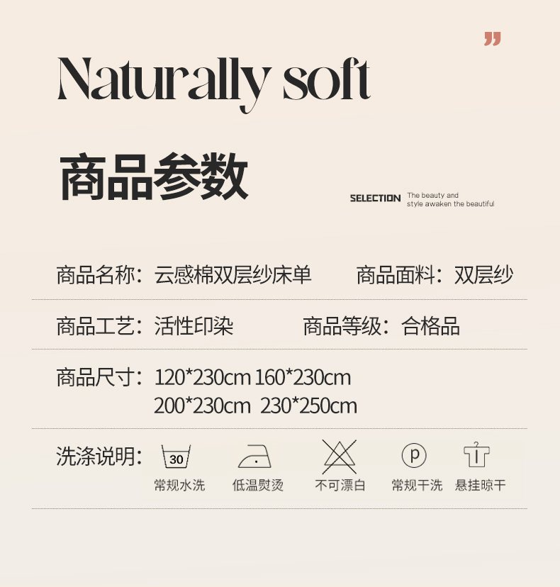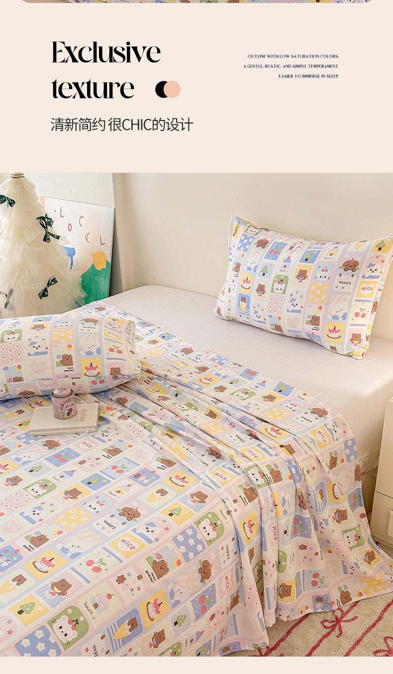 商品名称:温眠家纺 2025春夏新款云感棉双层纱床单单床单枕套三件套 甜茶