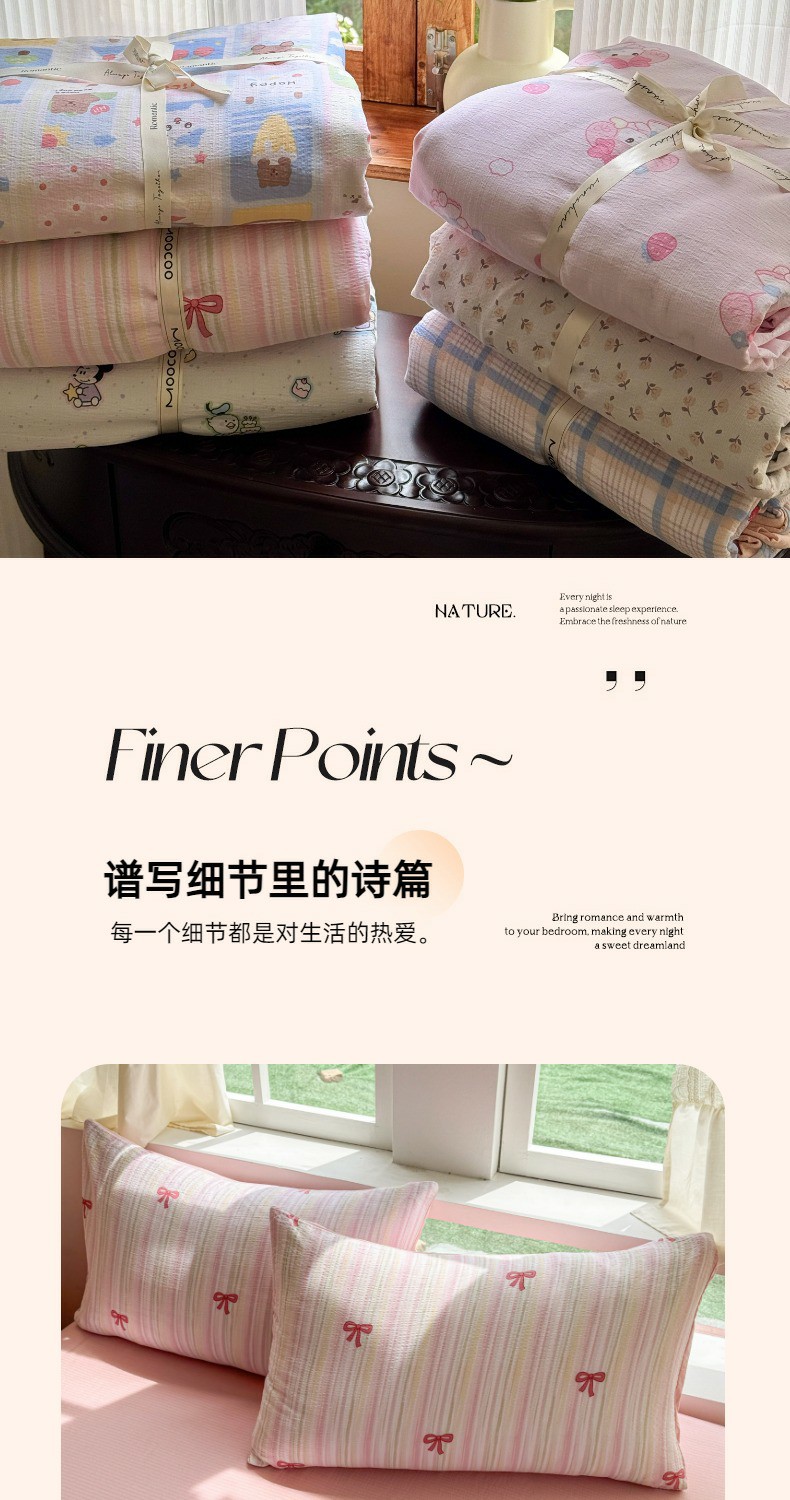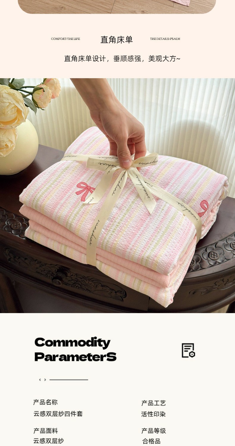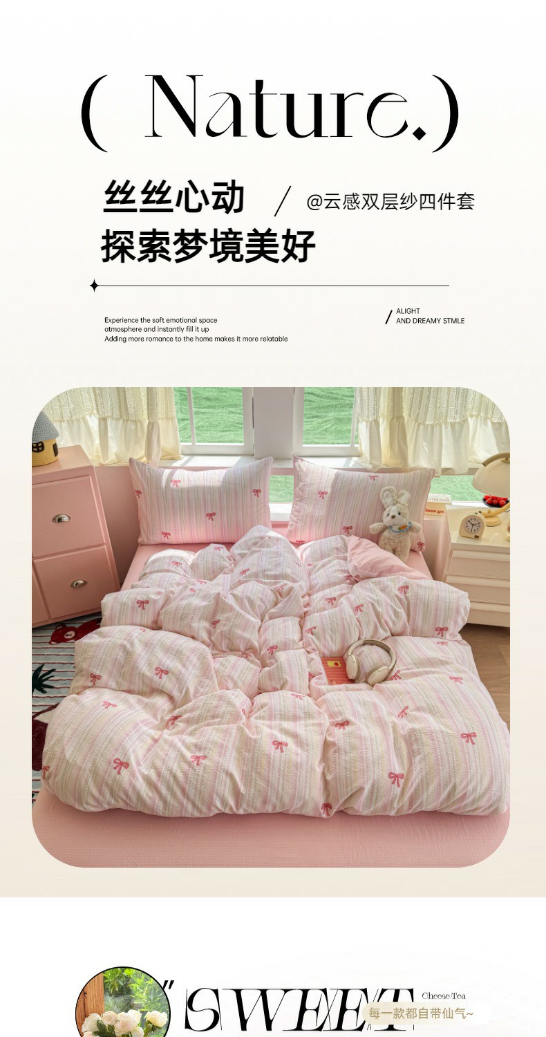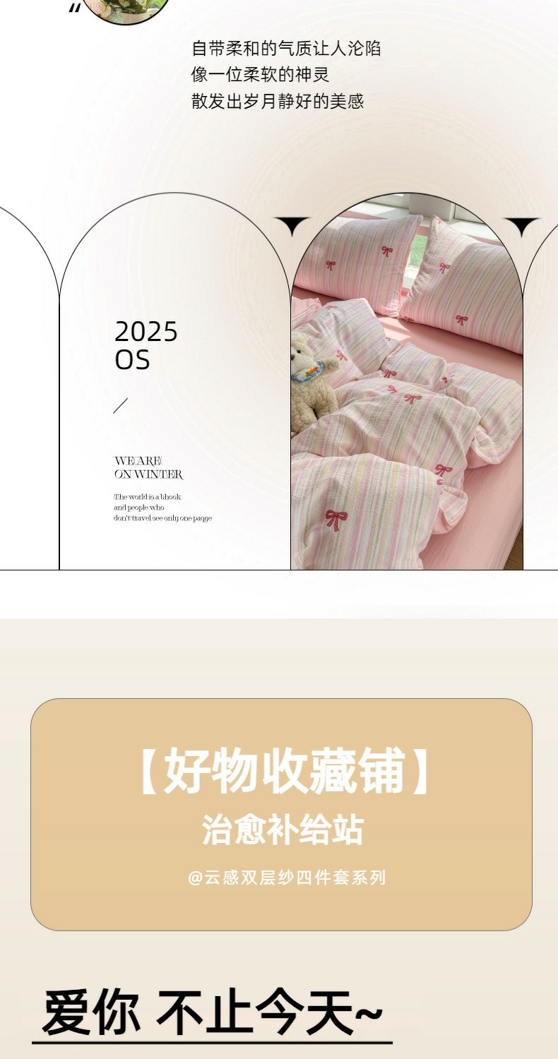 商品名称:温眠家纺 2025新款云感针织双层纱单被套系列 蝴蝶结