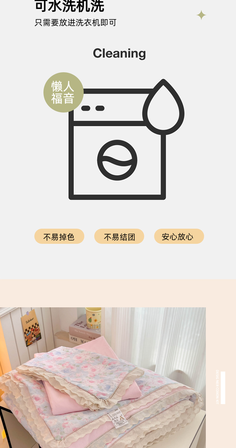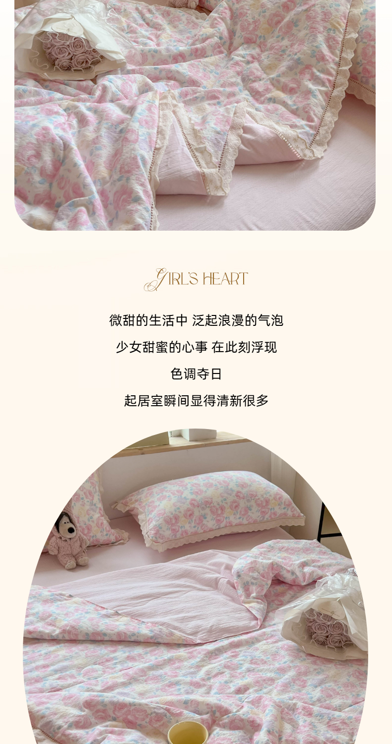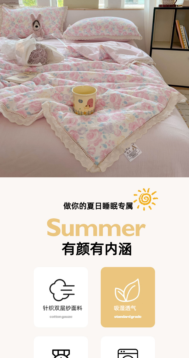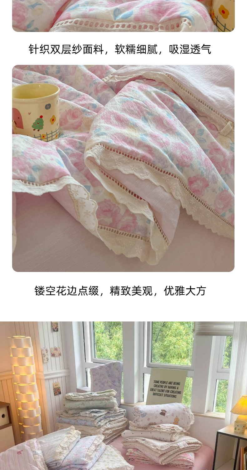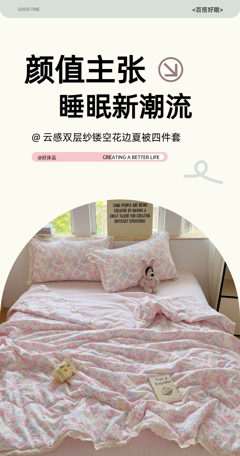 温眠家纺 2025新款云感双层纱镂空花边夏被四件套 晚香玉
