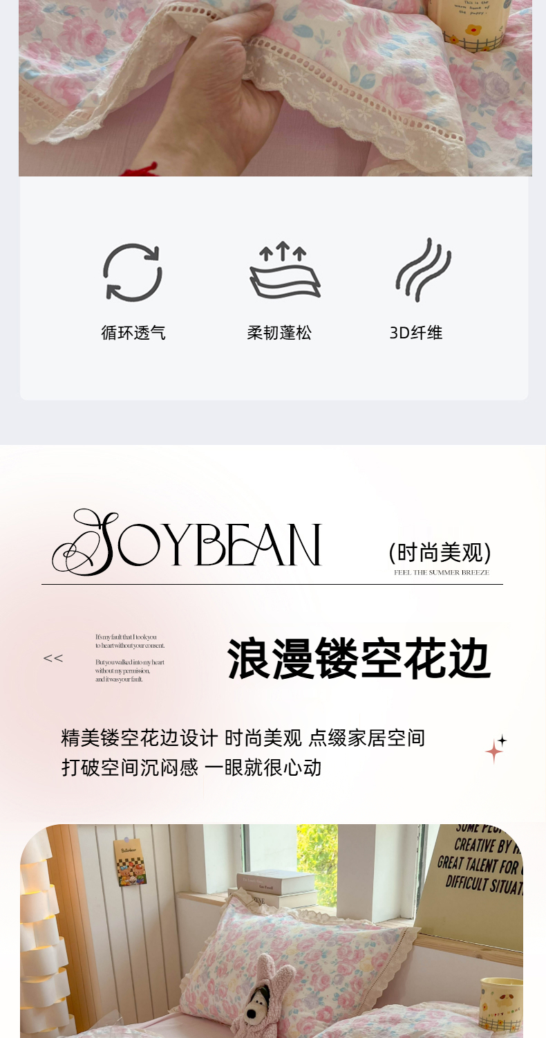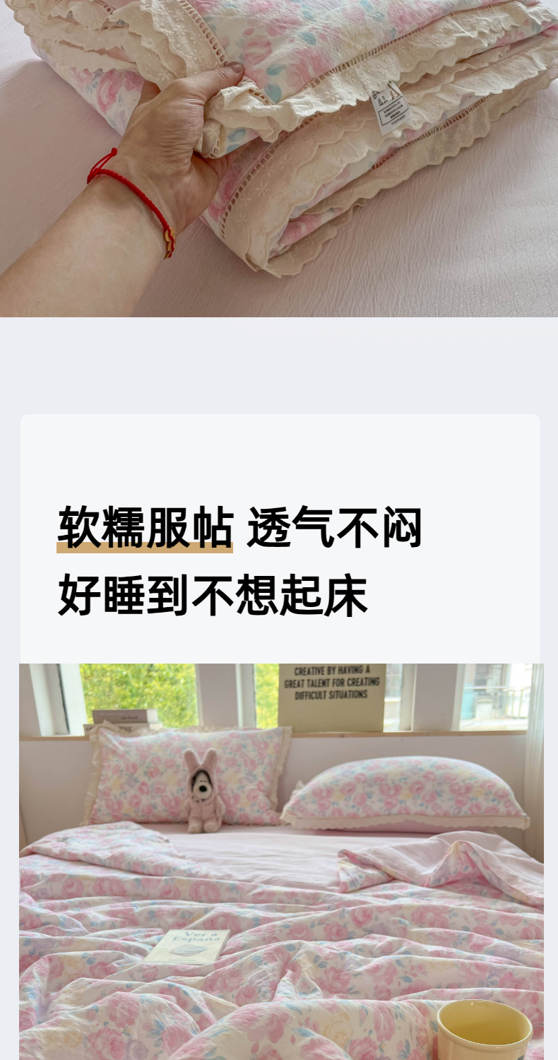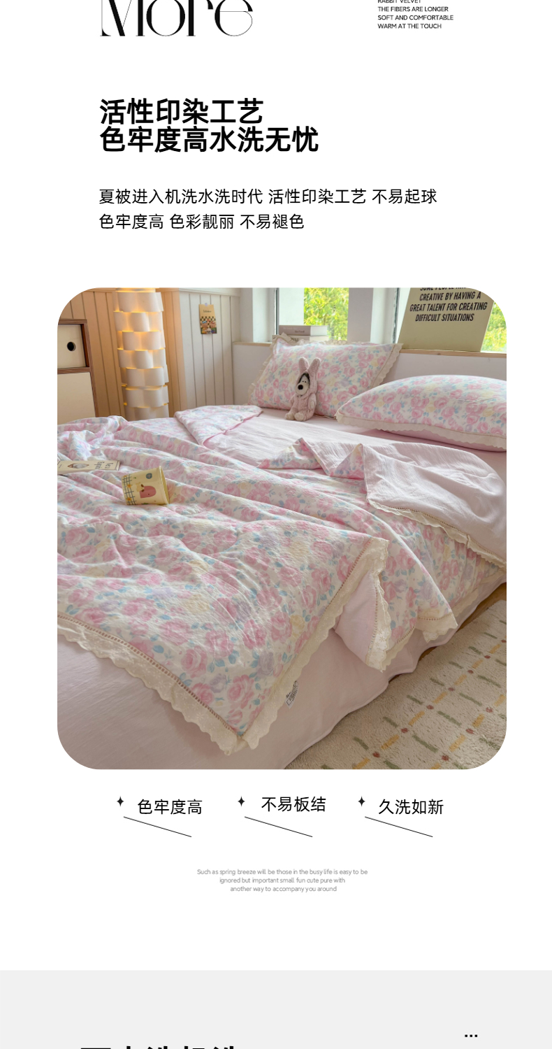 商品名称:温眠家纺 2025新款云感双层纱镂空花边夏被四件套 晚香玉