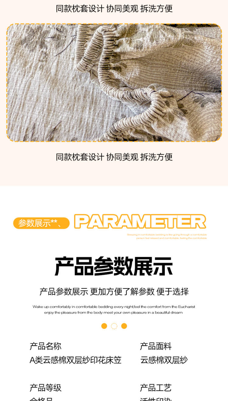 温眠家纺 2025春夏新款云感棉双层纱床笠单床笠枕套三件套 洛克庄园
