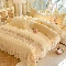 商品名称:漫布云2025秋冬新款11斤230g全消光牛奶绒夹棉床盖款四件套纯色蕾丝花边刺绣床裙款床盖 花韵-嫩黄