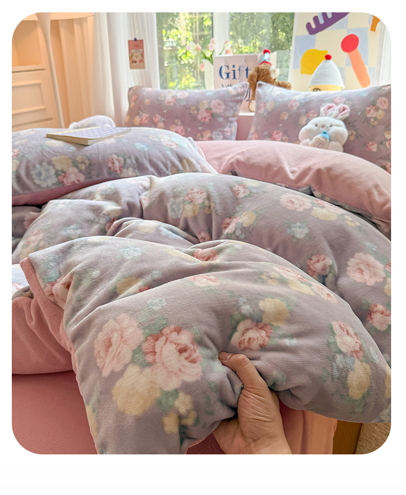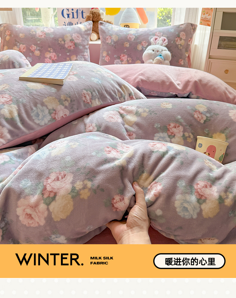 温眠家纺 2025新款全工艺200克牛奶绒印花四件套 春语