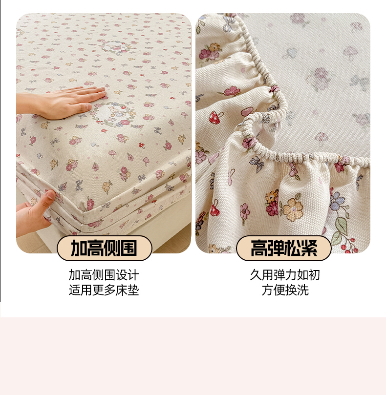 • 91家纺网 家纺一手货源 找家纺 爱彼家纺 2026新款舒适透气老粗布凉席印花床笠单件-床笠三件套 老粗布床笠-白朵花园