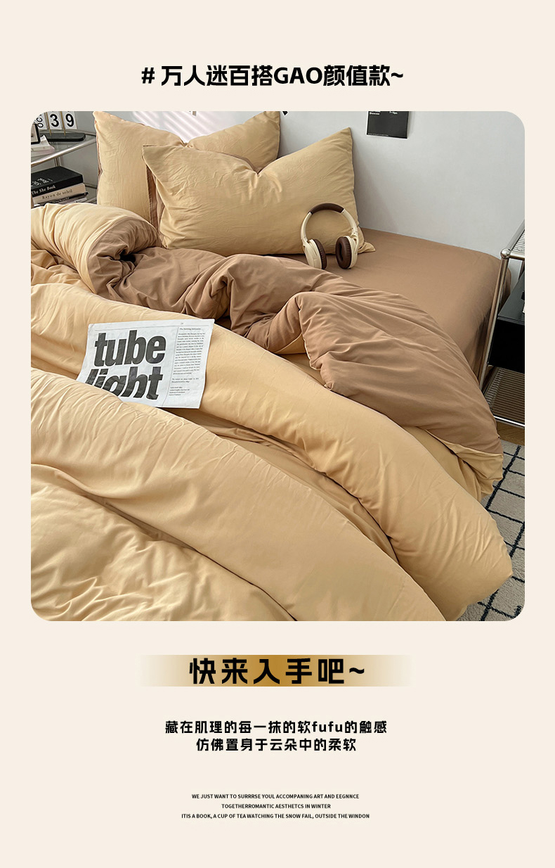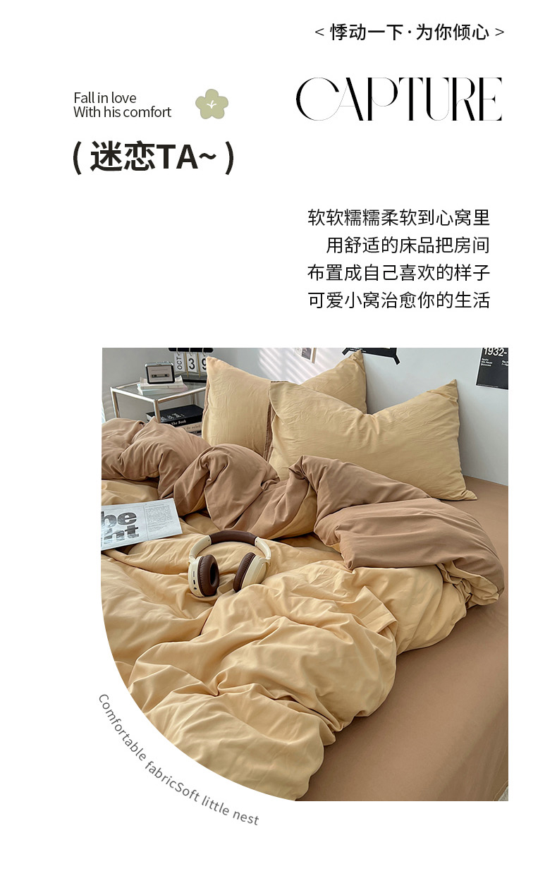 当前位置: 91家纺网 > 商品网购 > 床品套件 > 四件套 > 水洗棉四件套 > 世爵 2026新款10A抗菌亲肤水洗棉双拼四件套 暖驼