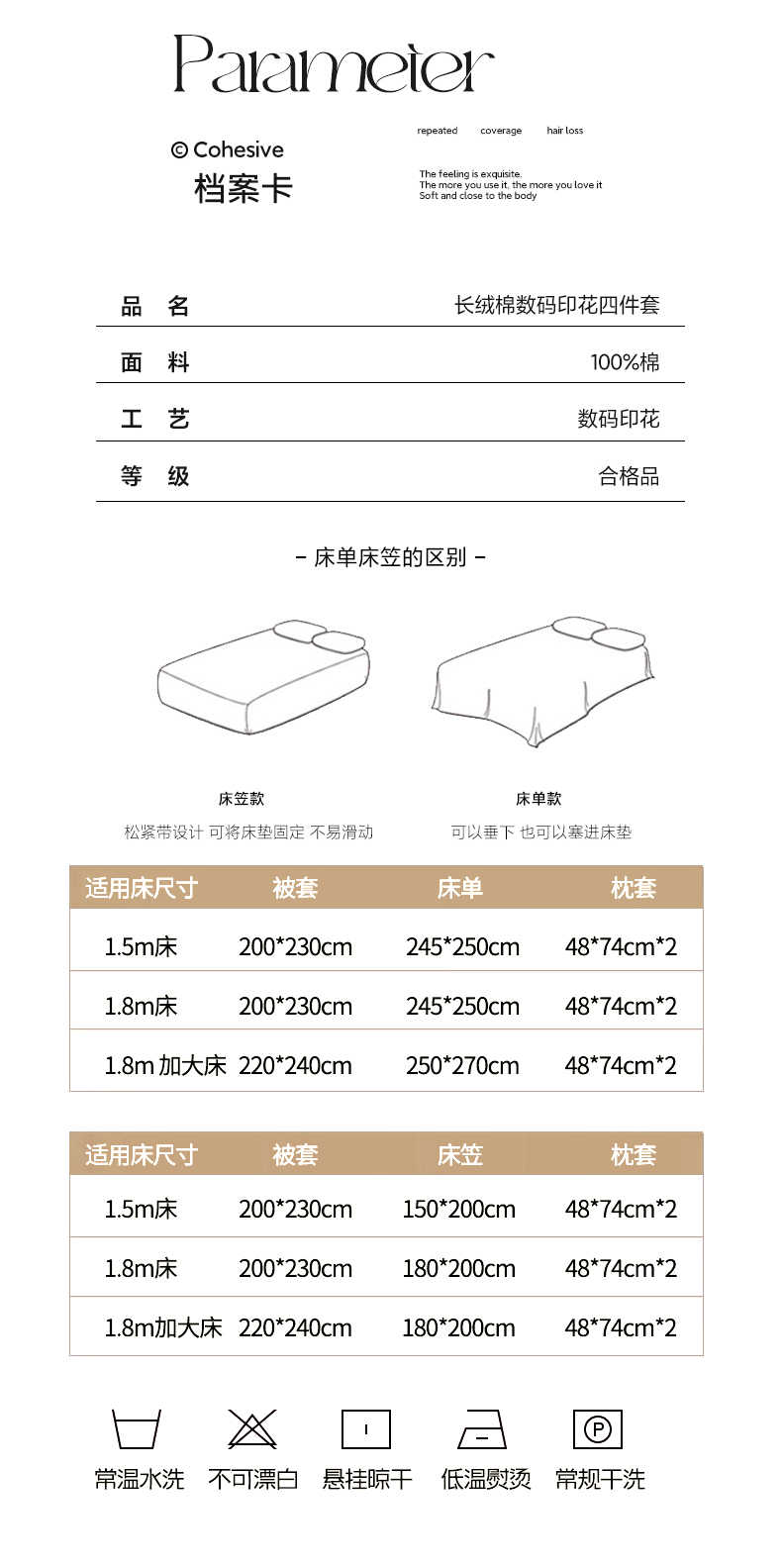 【床笠款】1.5四件套-被套200x230 | ¥250.00 |
