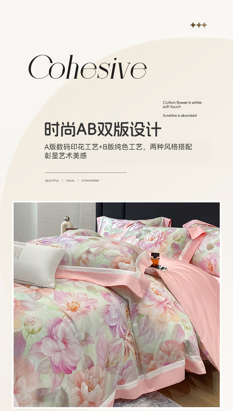 当前位置: 91家纺网 > 商品网购 > 床品套件 > 四件套 > 长绒棉四件套 > (总)家居1号家纺 2026新款50双股长绒棉纯棉数码数码印花四件套-芬芳/浪蝶(券后价格不得低于:标准328元,加348元!会员优惠10元)