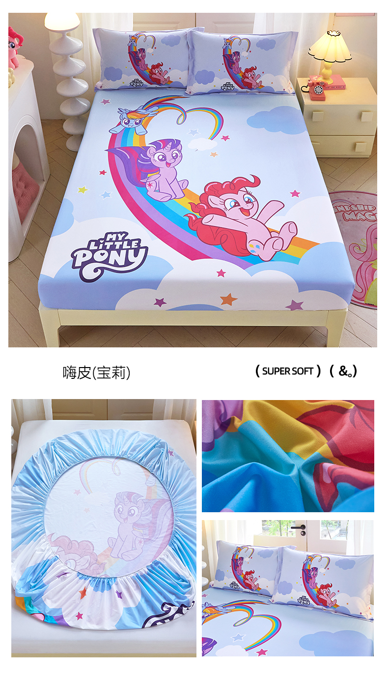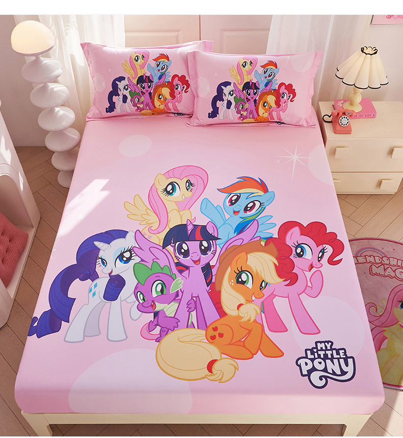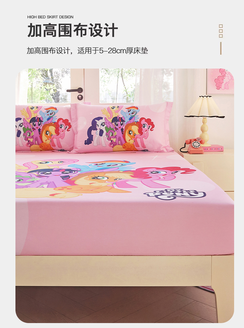 • 91家纺网 家纺一手货源 找家纺 蘭菲家纺 2026新款全棉纯棉大版卡通单床笠床笠单件-小马宝莉 大家族.宝莉