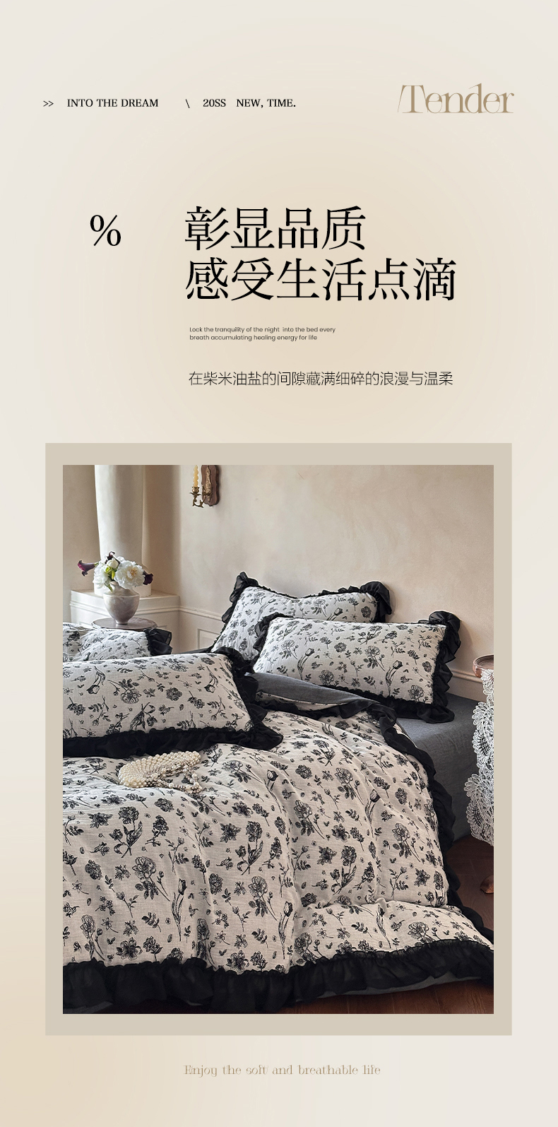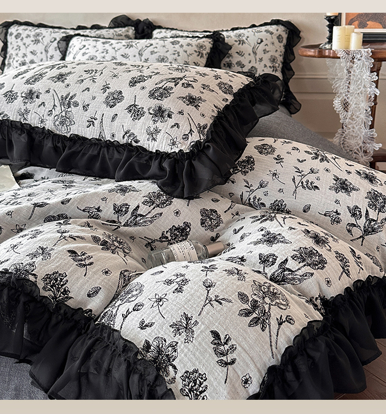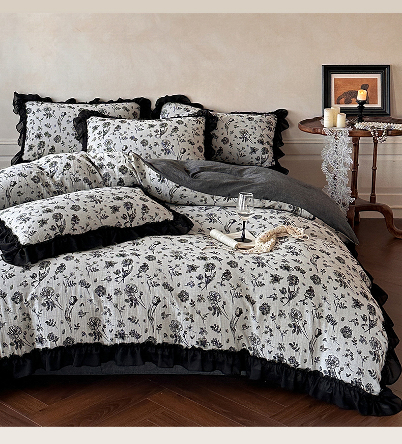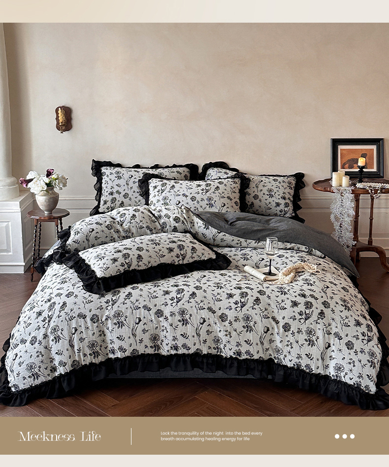 当前位置: 91家纺网 > 商品网购 > 床品套件 > 四件套 > 全棉普通四件套 > (总)莱茵家居 2026新款A类法式花边复古60支全棉纯棉色织大提花四件套-梦境系列
