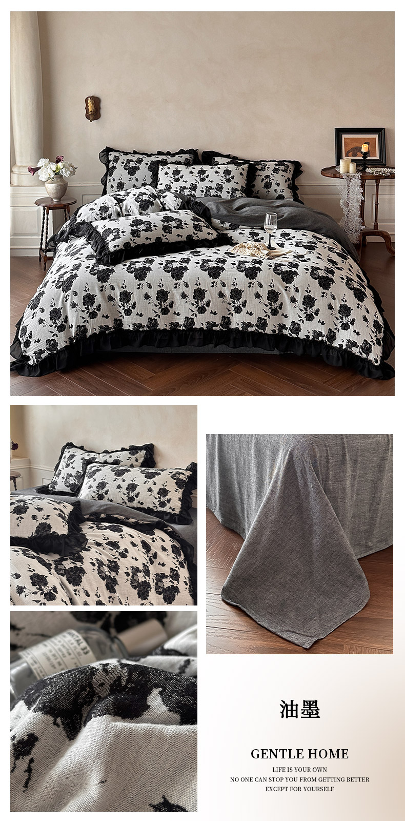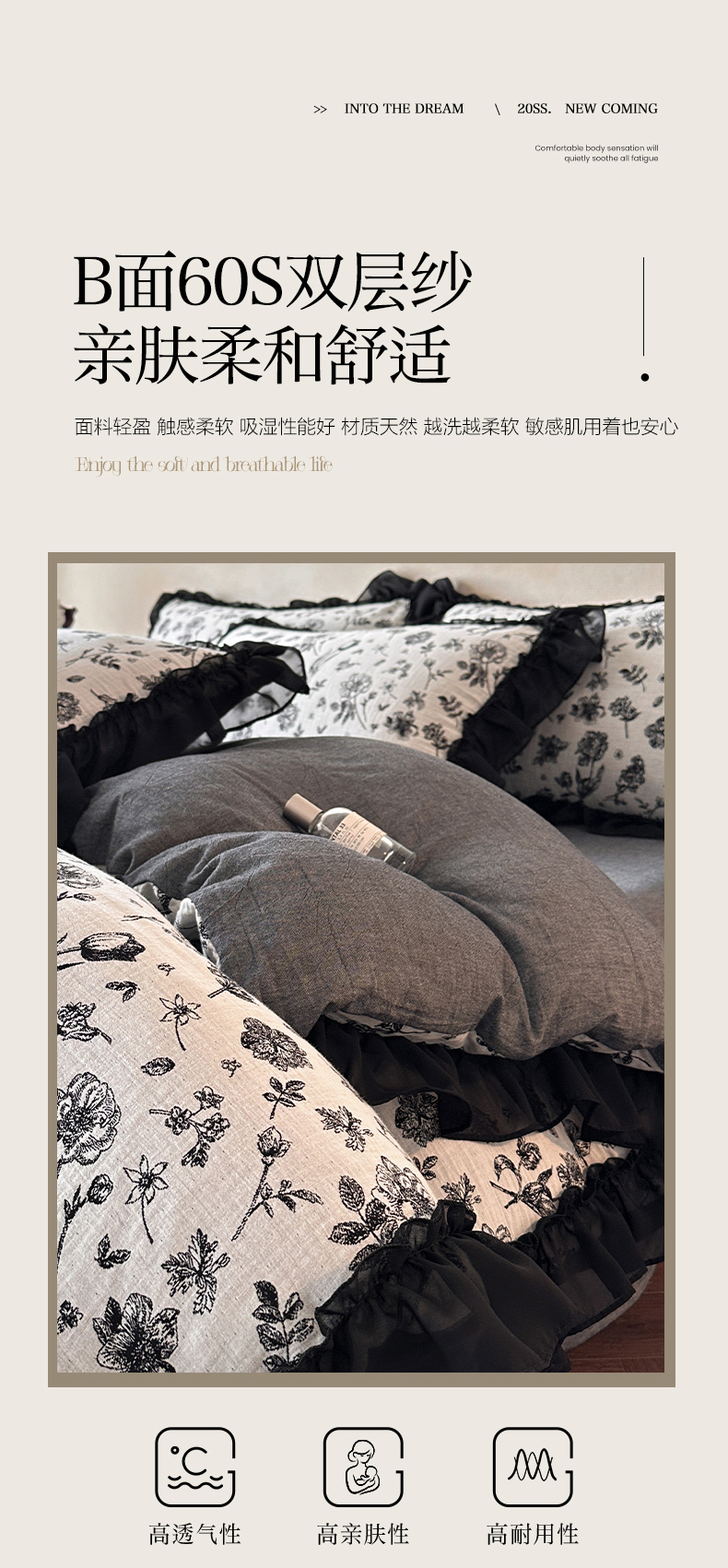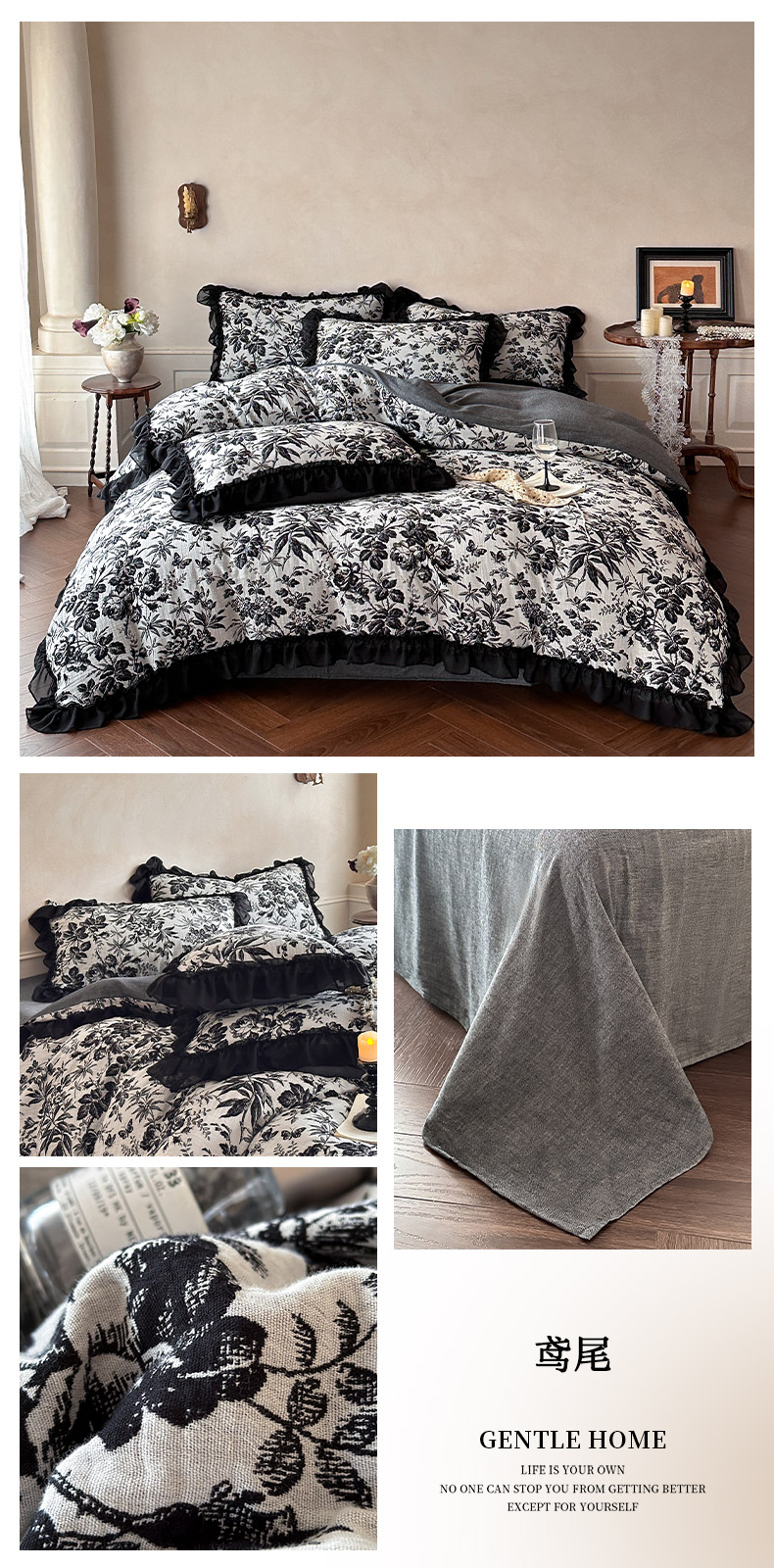 当前位置: 91家纺网 > 商品网购 > 床品套件 > 四件套 > 全棉普通四件套 > (总)莱茵家居 2026新款A类法式花边复古60支全棉纯棉色织大提花四件套-梦境系列