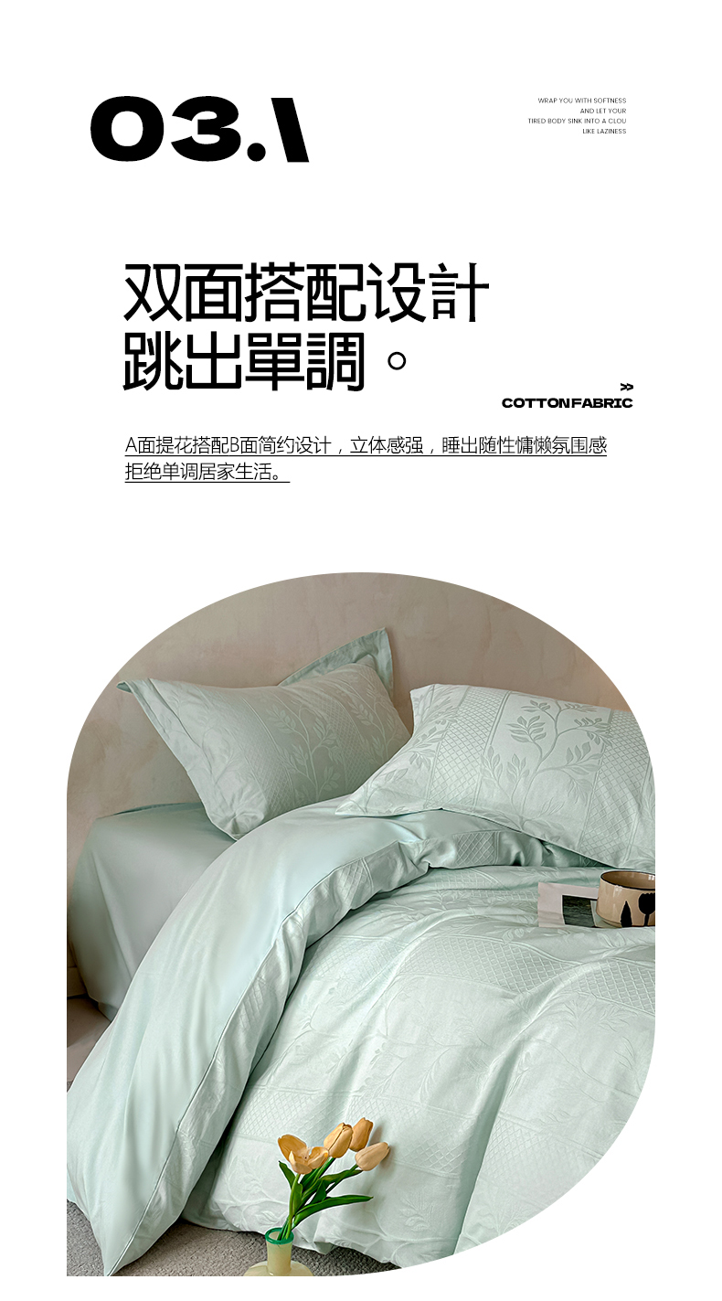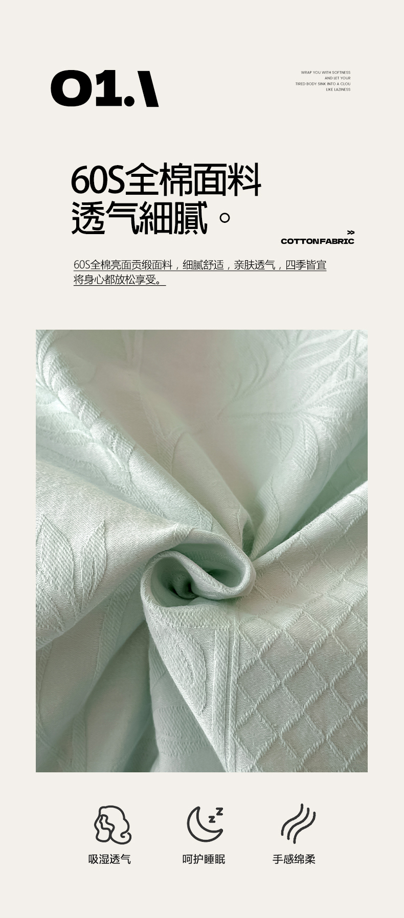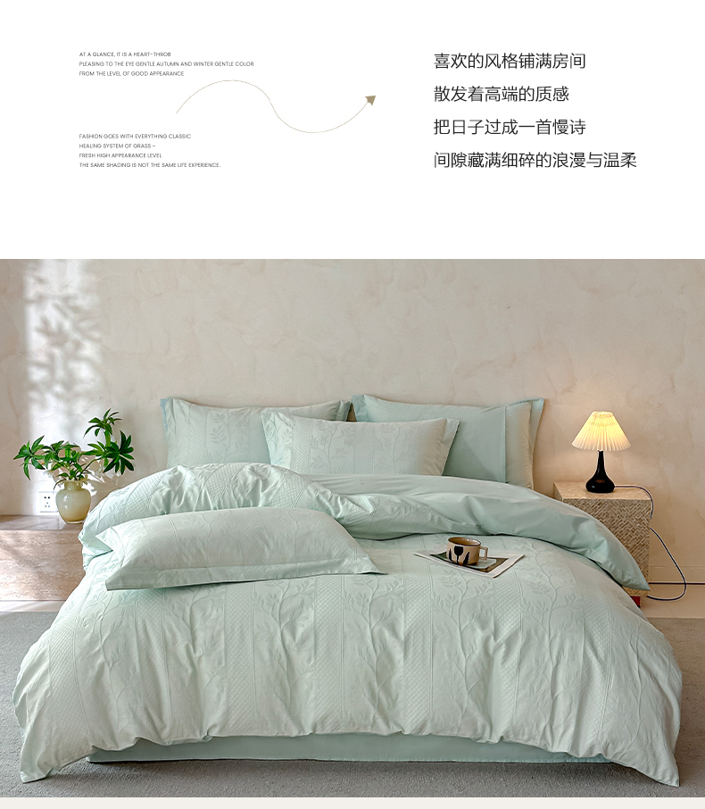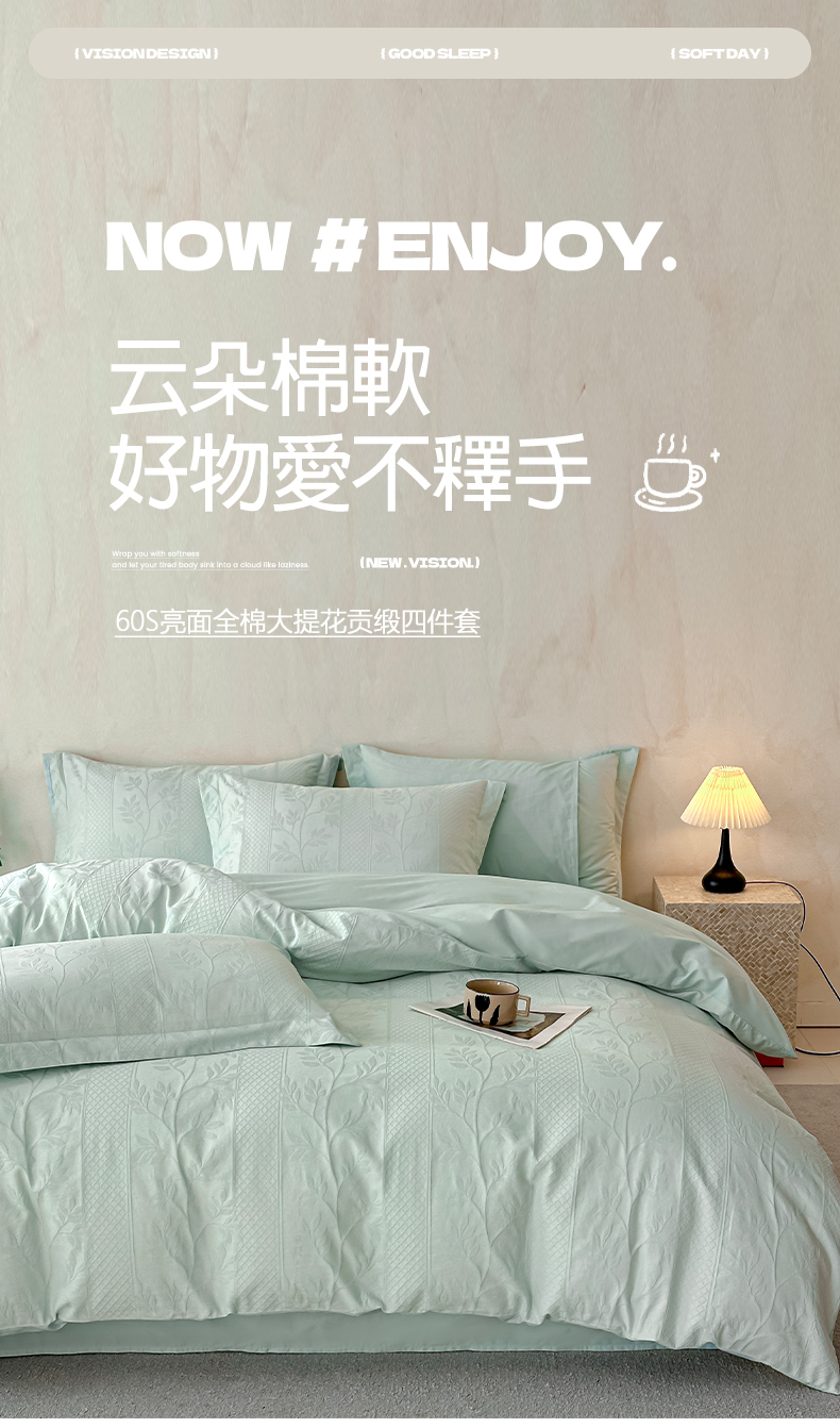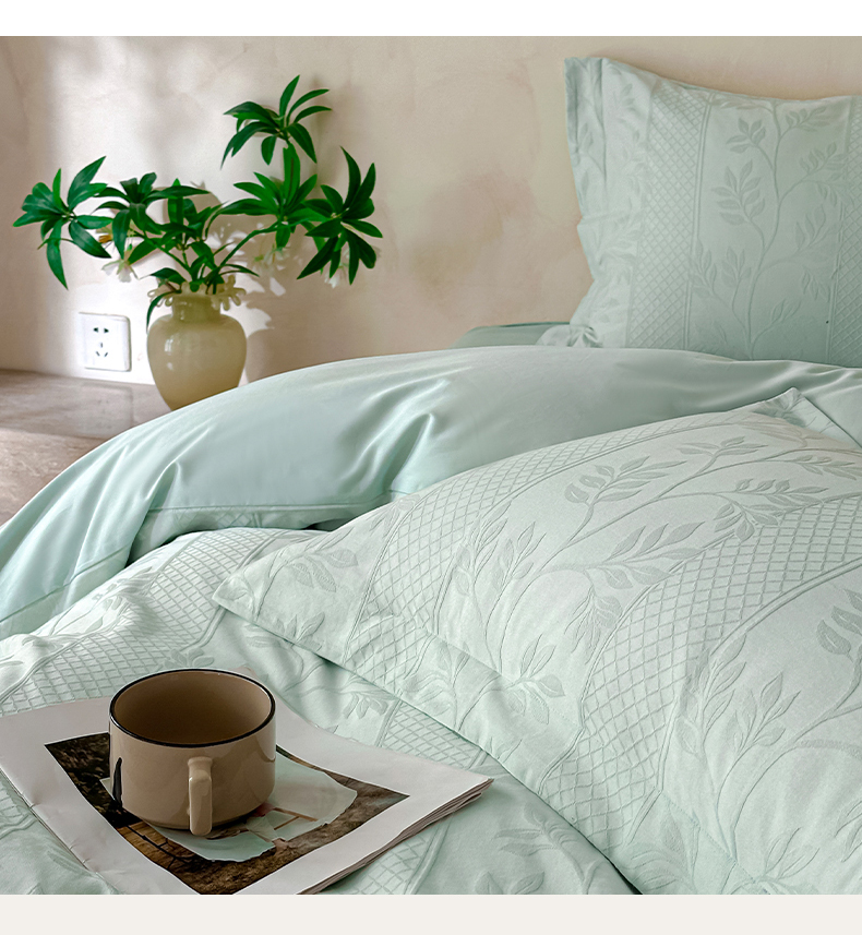 当前位置: 91家纺网 > 商品网购 > 床品套件 > 四件套 > 贡缎全棉四件套 > 莱茵家居 2026新款A类60支长绒棉纯棉提花贡缎大提花四件套光泽绸缎感轻奢风 湫波-青提