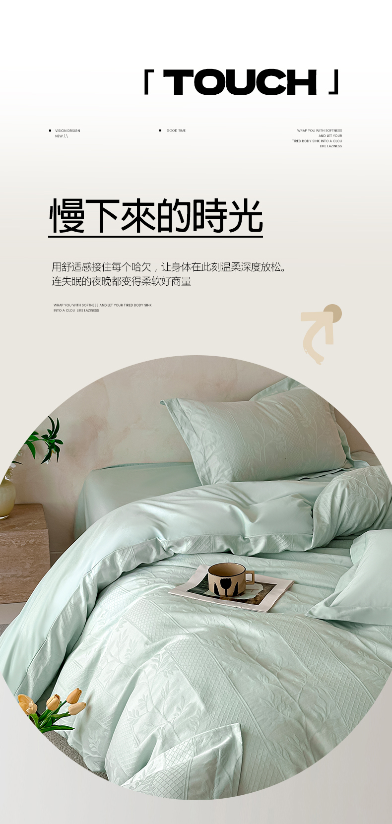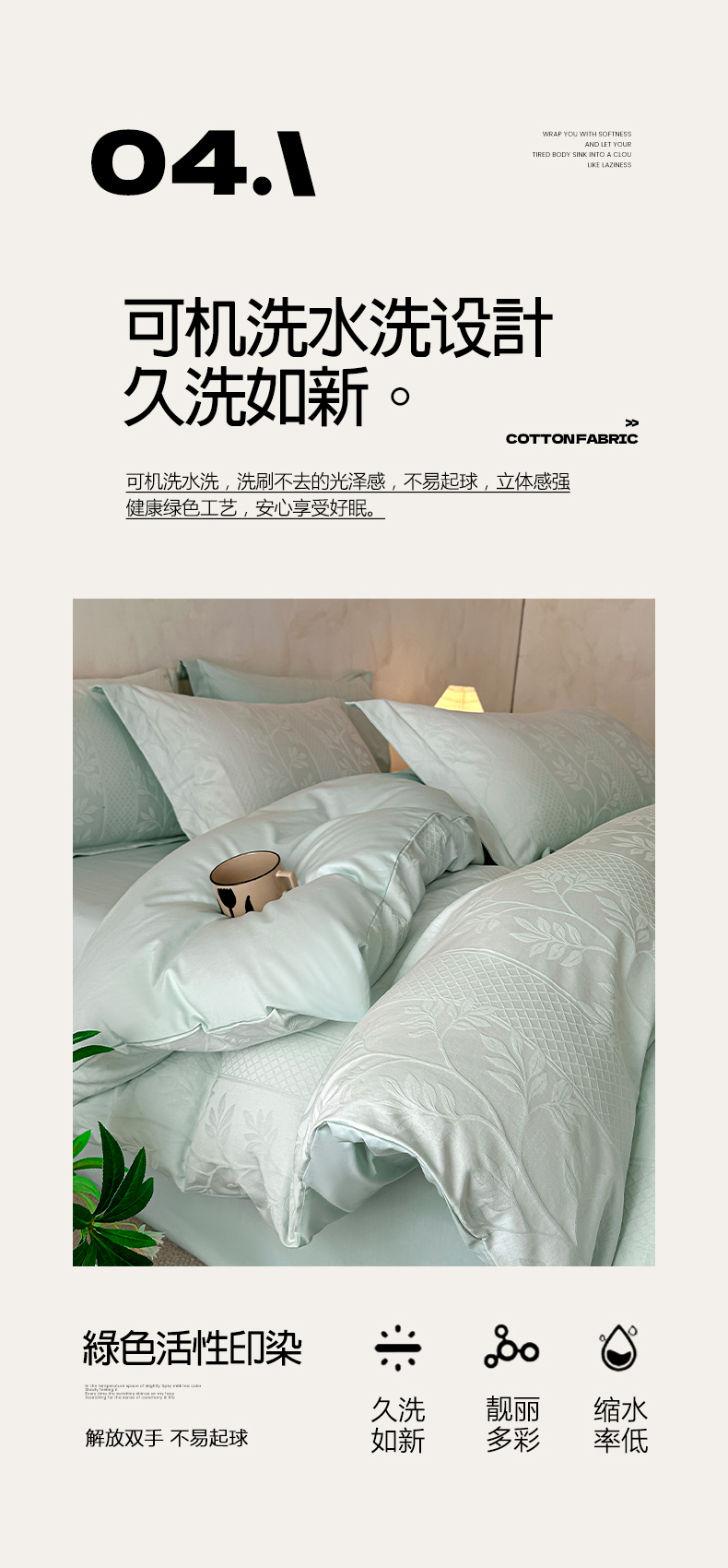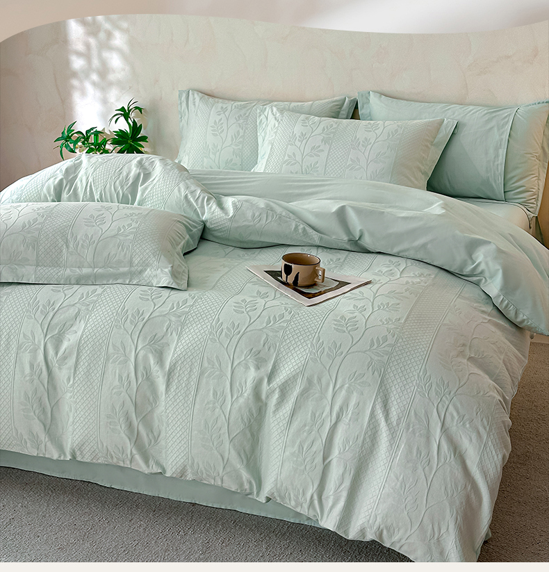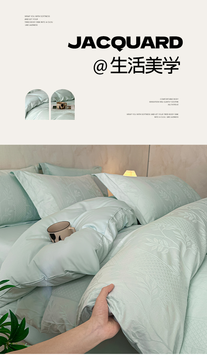 当前位置: 91家纺网 > 商品网购 > 床品套件 > 四件套 > 贡缎全棉四件套 > 莱茵家居 2026新款A类60支长绒棉纯棉提花贡缎大提花四件套光泽绸缎感轻奢风 湫波-青提