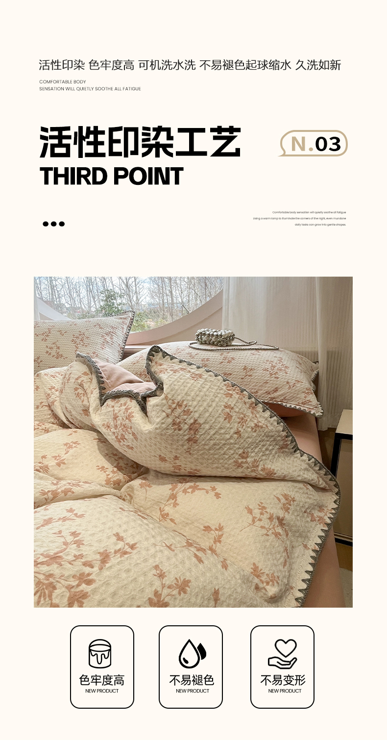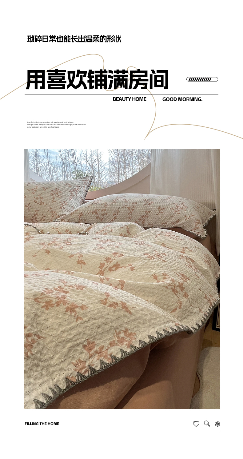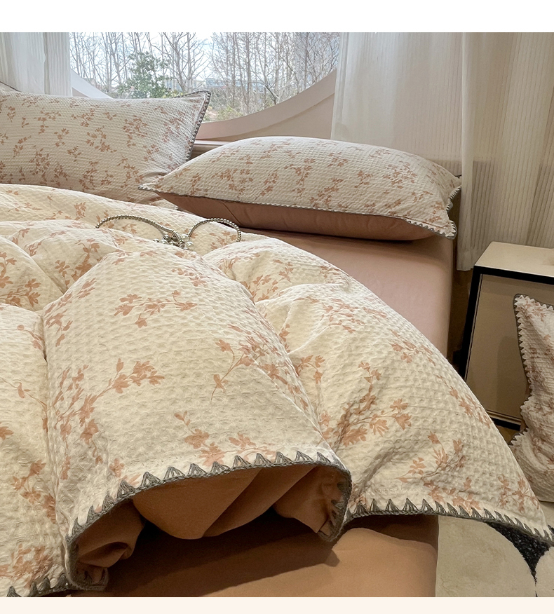 当前位置: 91家纺网 > 商品网购 > 床品套件 > 四件套 > 全棉普通四件套 > 莱茵家居 2026新款A类全棉华夫格印花贝壳边套件-华夫系列 华夫-苏黎