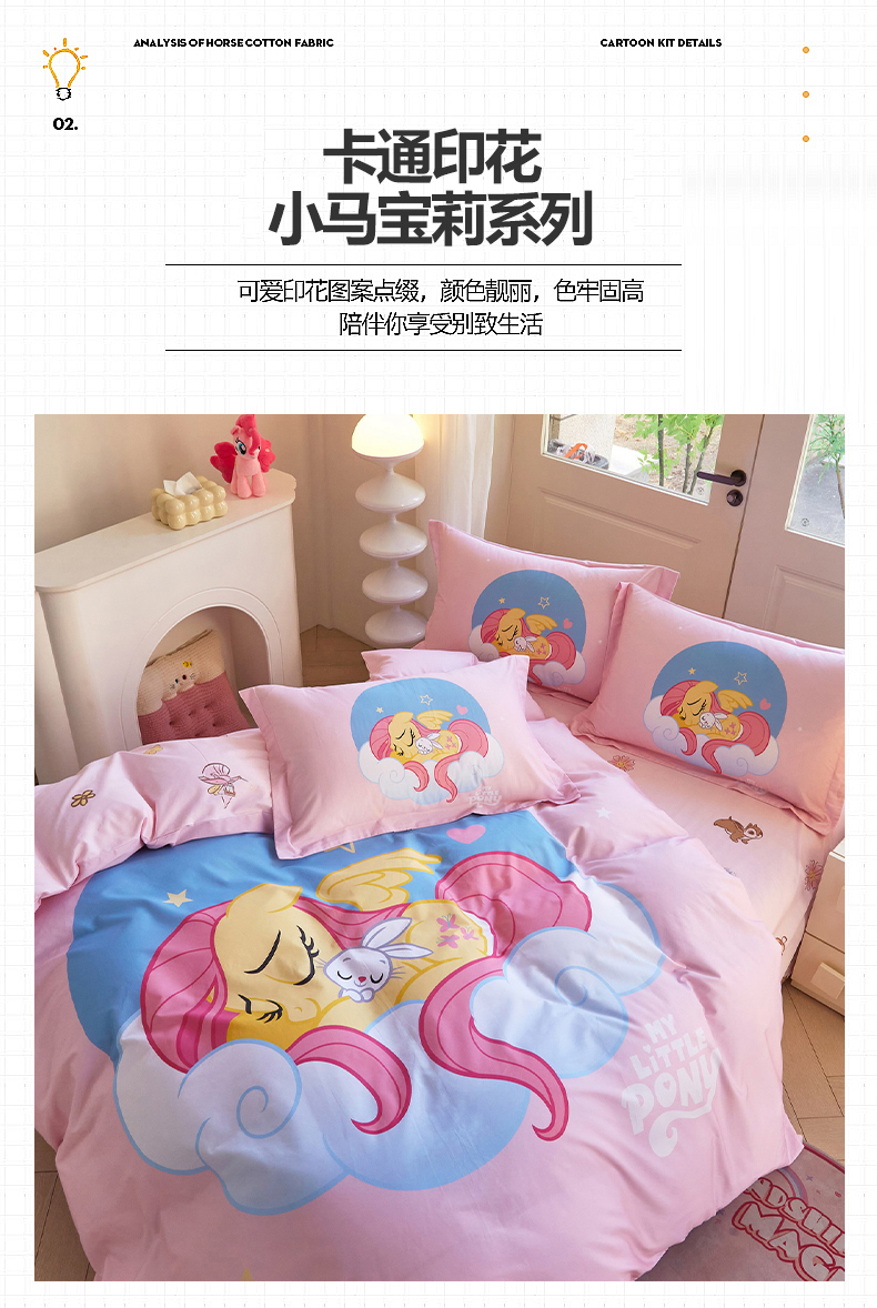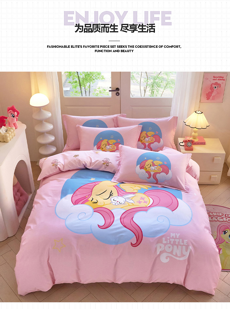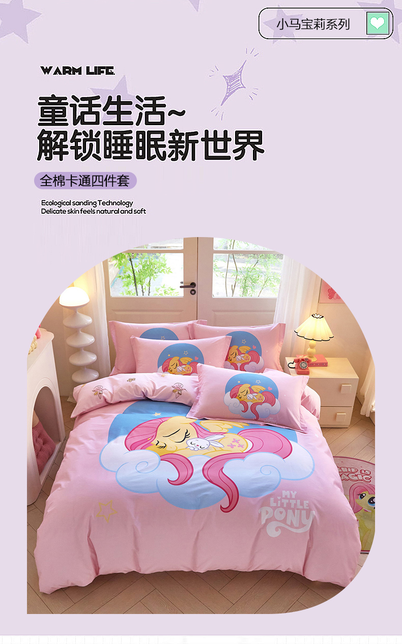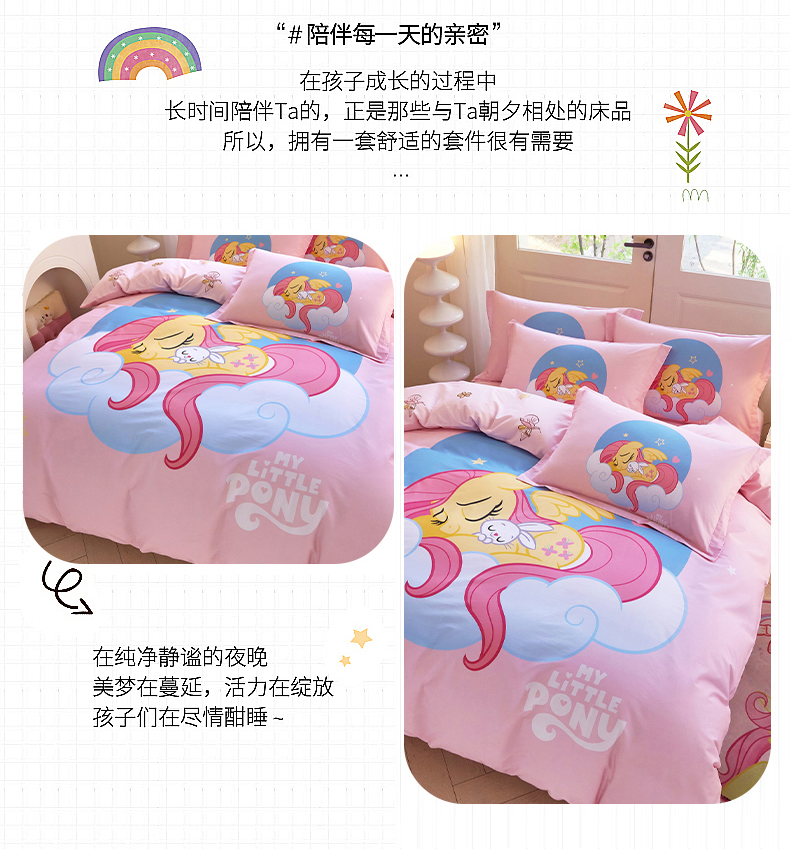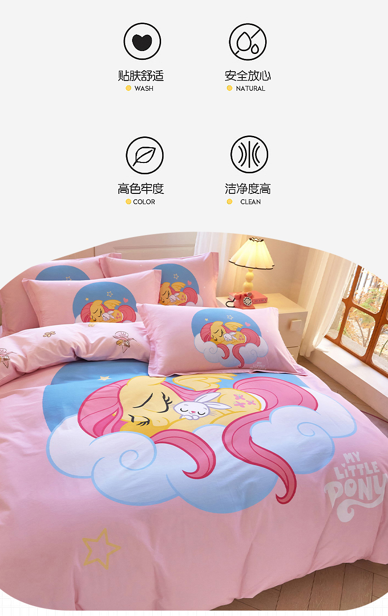 当前位置: 91家纺网 > 商品网购 > 床品套件 > 四件套 > 全棉普通四件套 > 蘭菲家纺 2026新款全棉纯棉大版卡通四件套-小马宝莉 晚安.宝莉