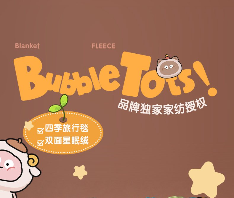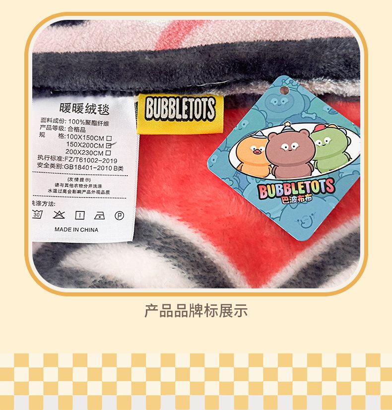 商品名称:(总)潮邦创意家居 2026新款星眠绒单层双面球毯-BubbleTots巴波布布独家授权-第一批 控价:100*150cm不得低于69元 150*200cm不得低于89元