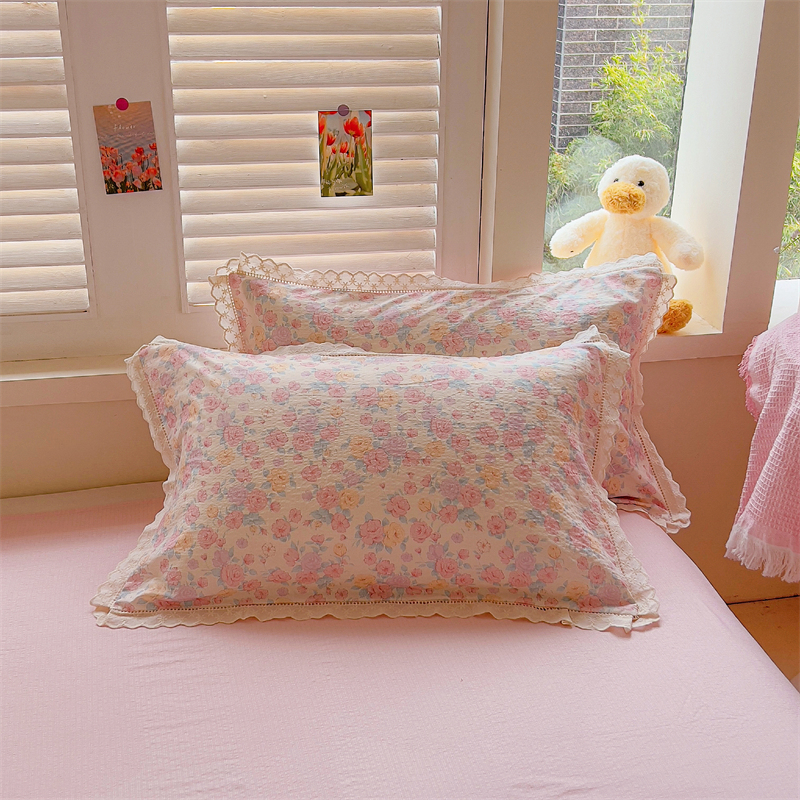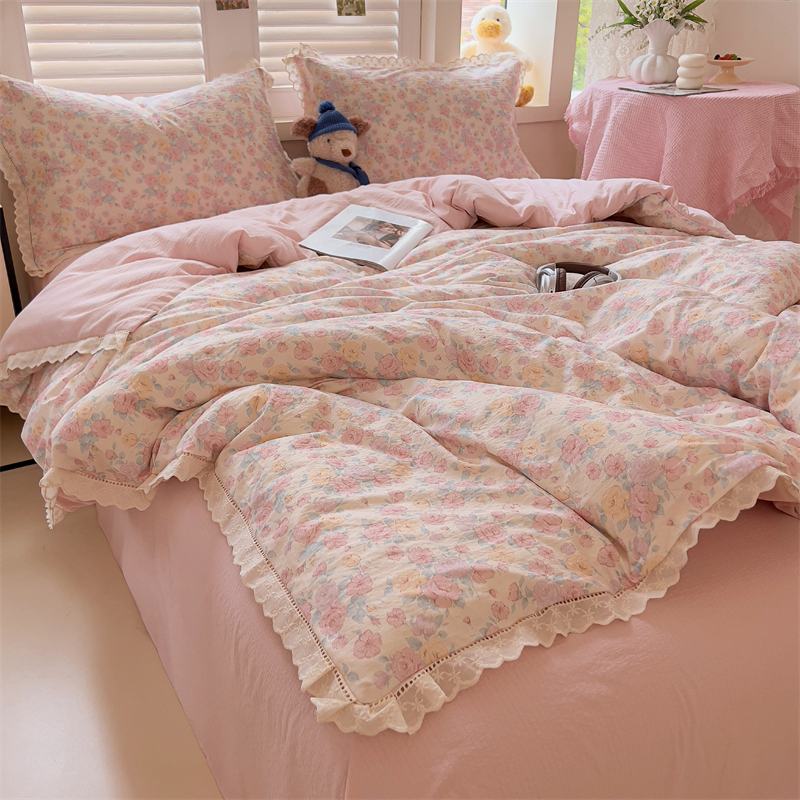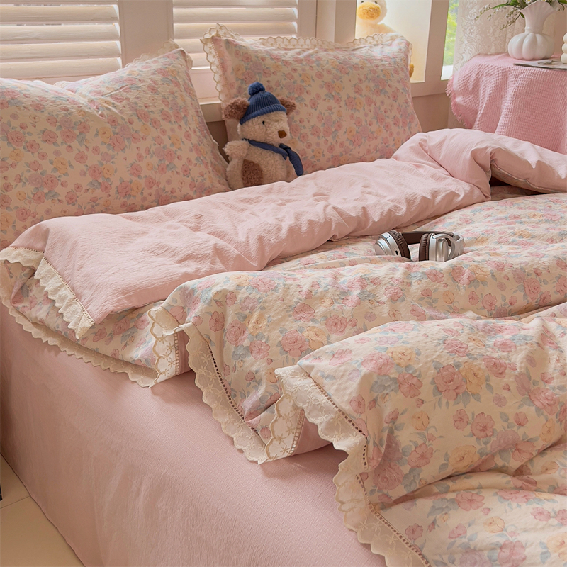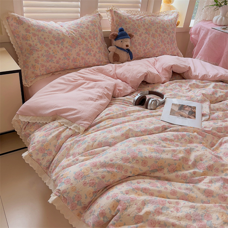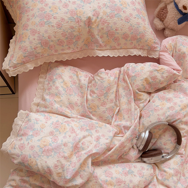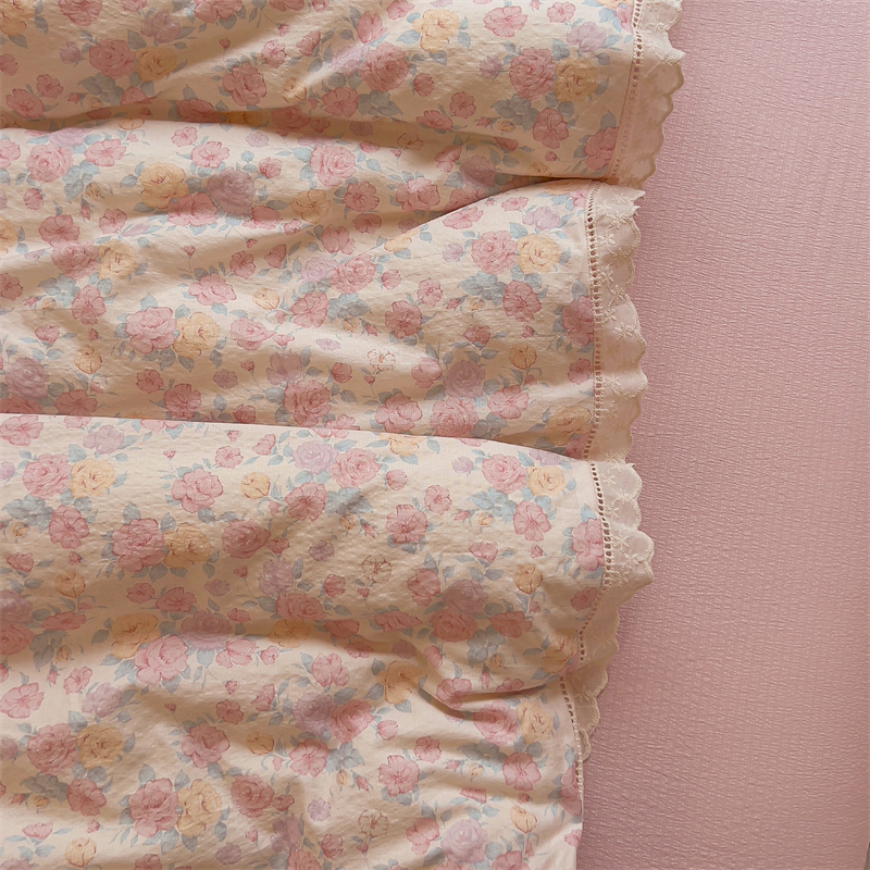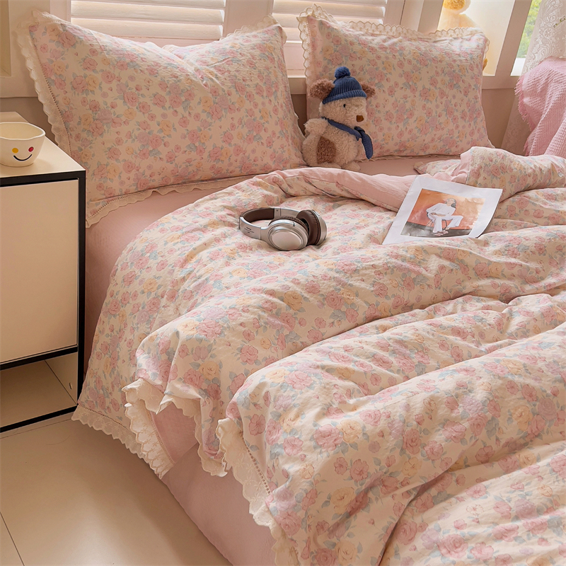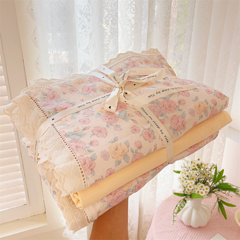 商品名称:壹号库家纺 2026新款云感木棉皱皱纱双层纱四件套-全棉花边款 梦露