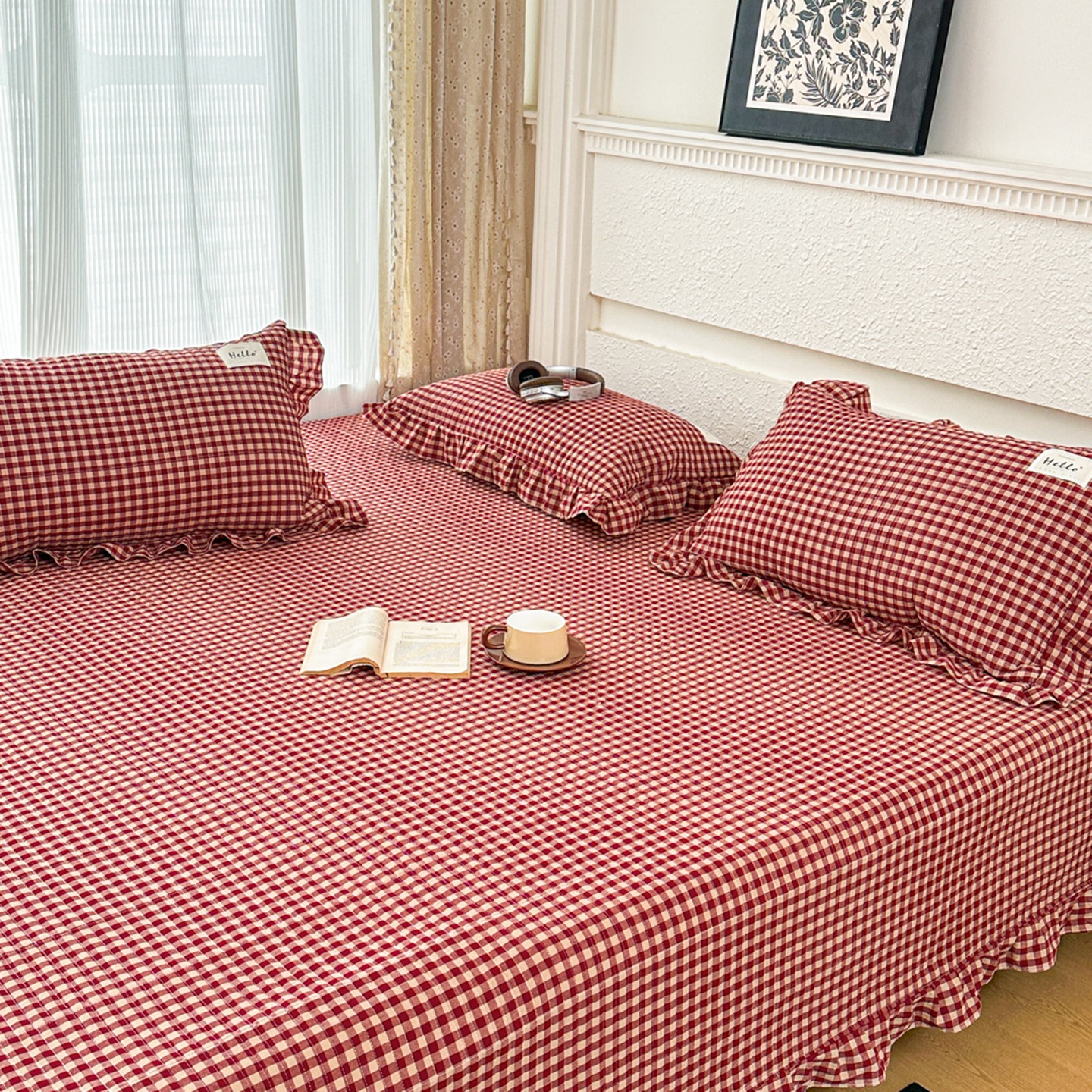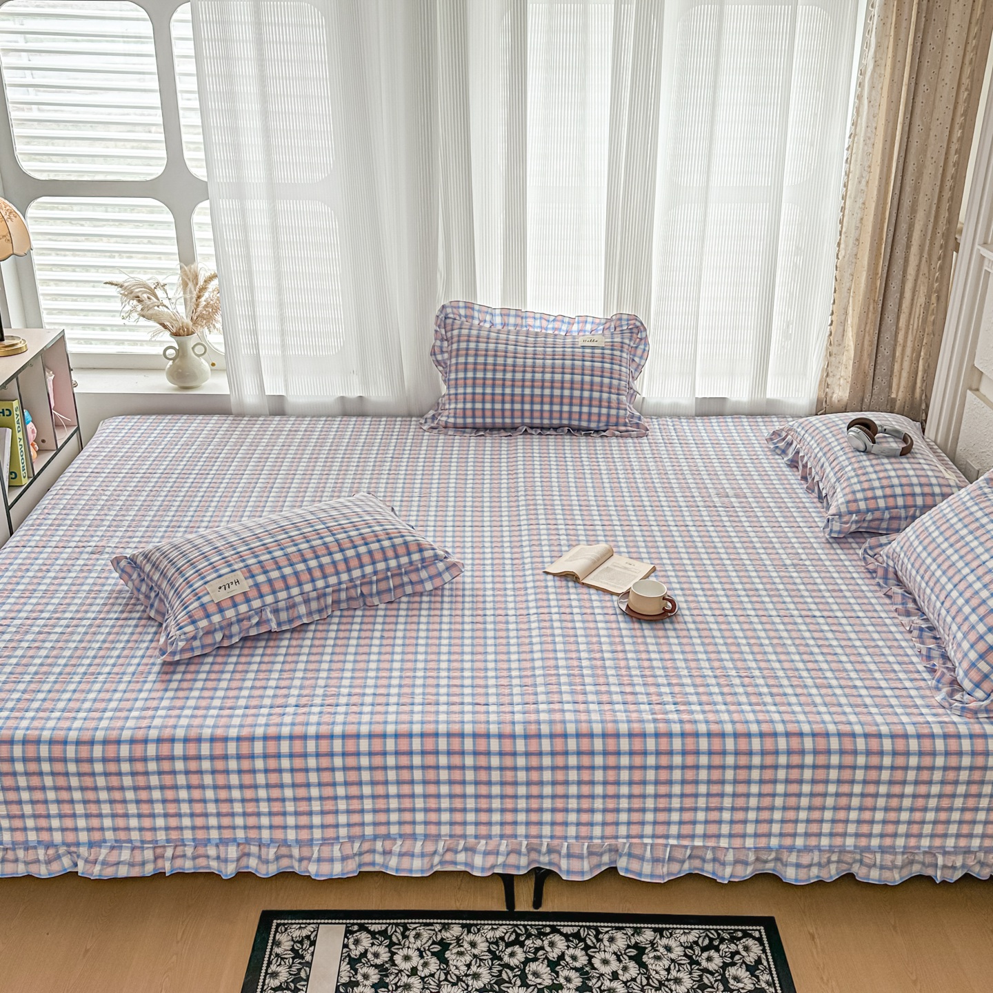(总)暖居 2026新款全棉纯棉色织榻榻米三件套四件套单件大炕盖支持定制,黄小格,经典红咖格,经典咖小格,蓝格子,抹茶绿,紫色格子